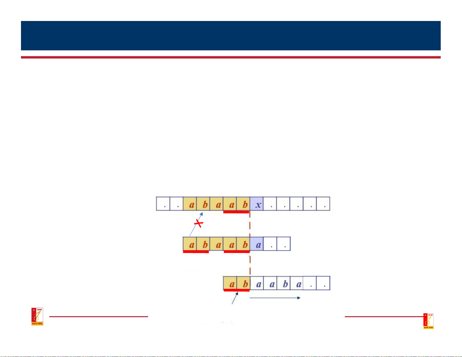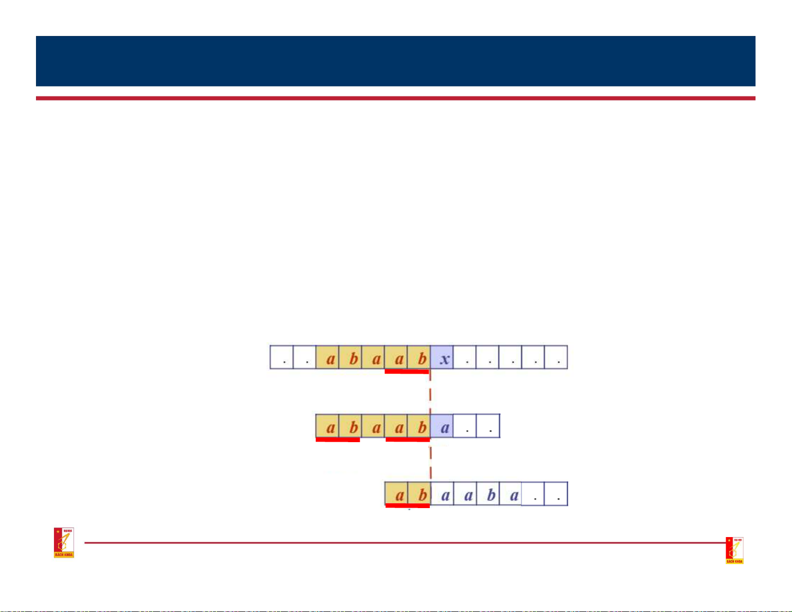(p[0] p[1] .. p[k-1]) and (p[j-k] p[1] .. p[j-1]) If they are equal then next[j] = k; End of algorithm; Otherwise, k = k – 1;