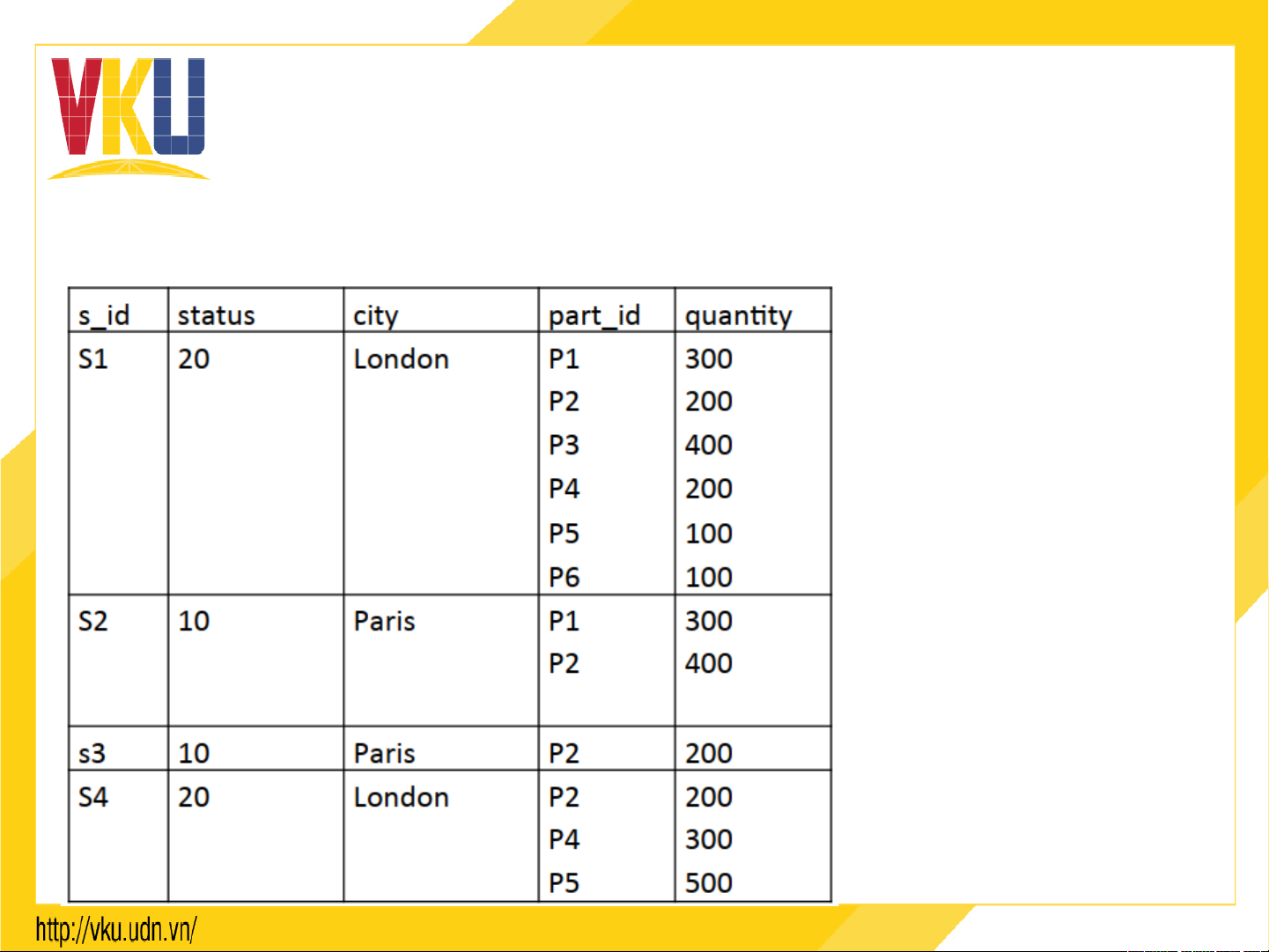 qVí dụ: Bảng nhà cung cấp có ở dạng chuẩn 1NF không? 10