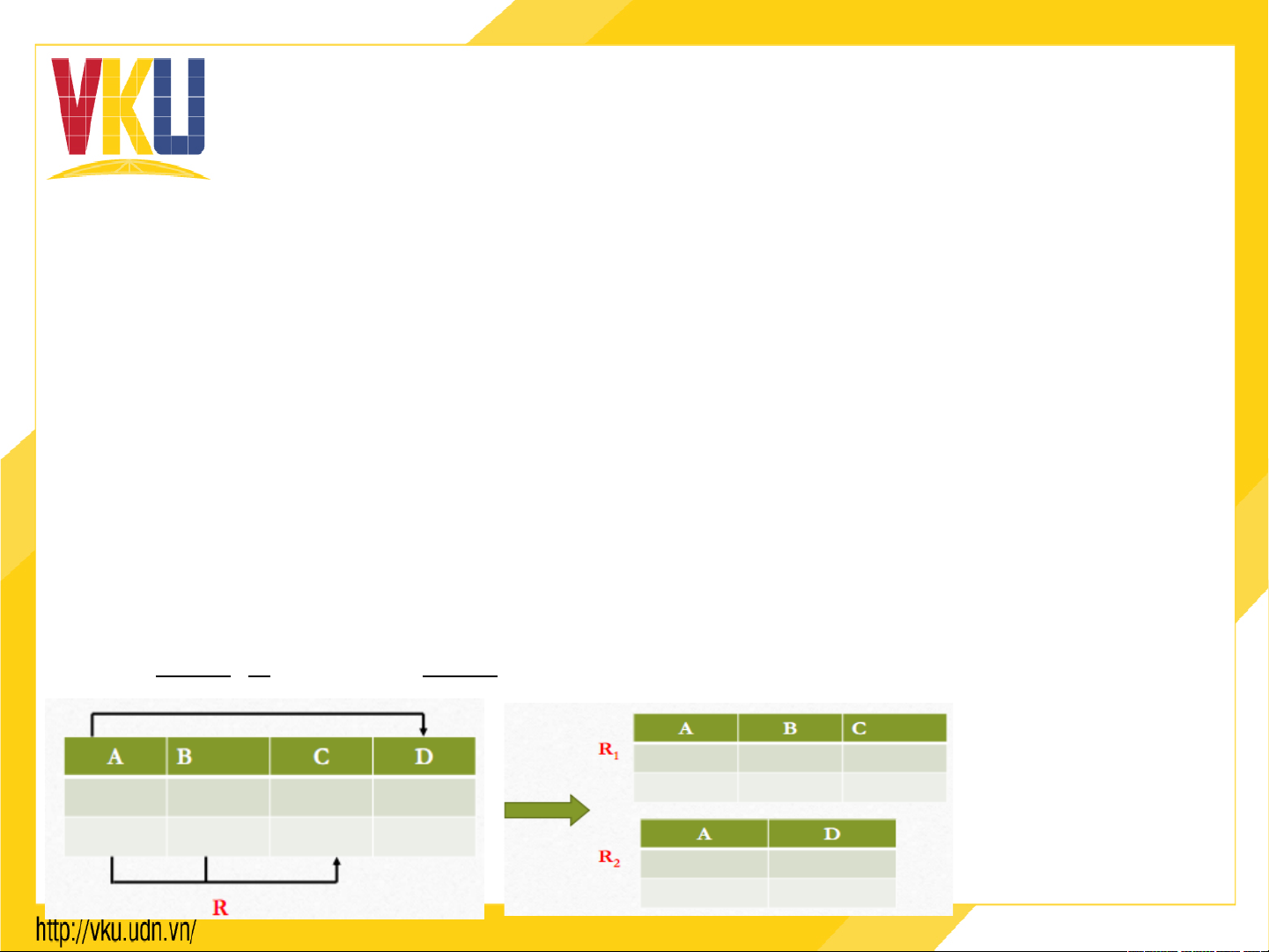 Vì vậy, R không ở dạng chuẩn 2NF. Do đó, phân rã quan hệ thành 2 quan