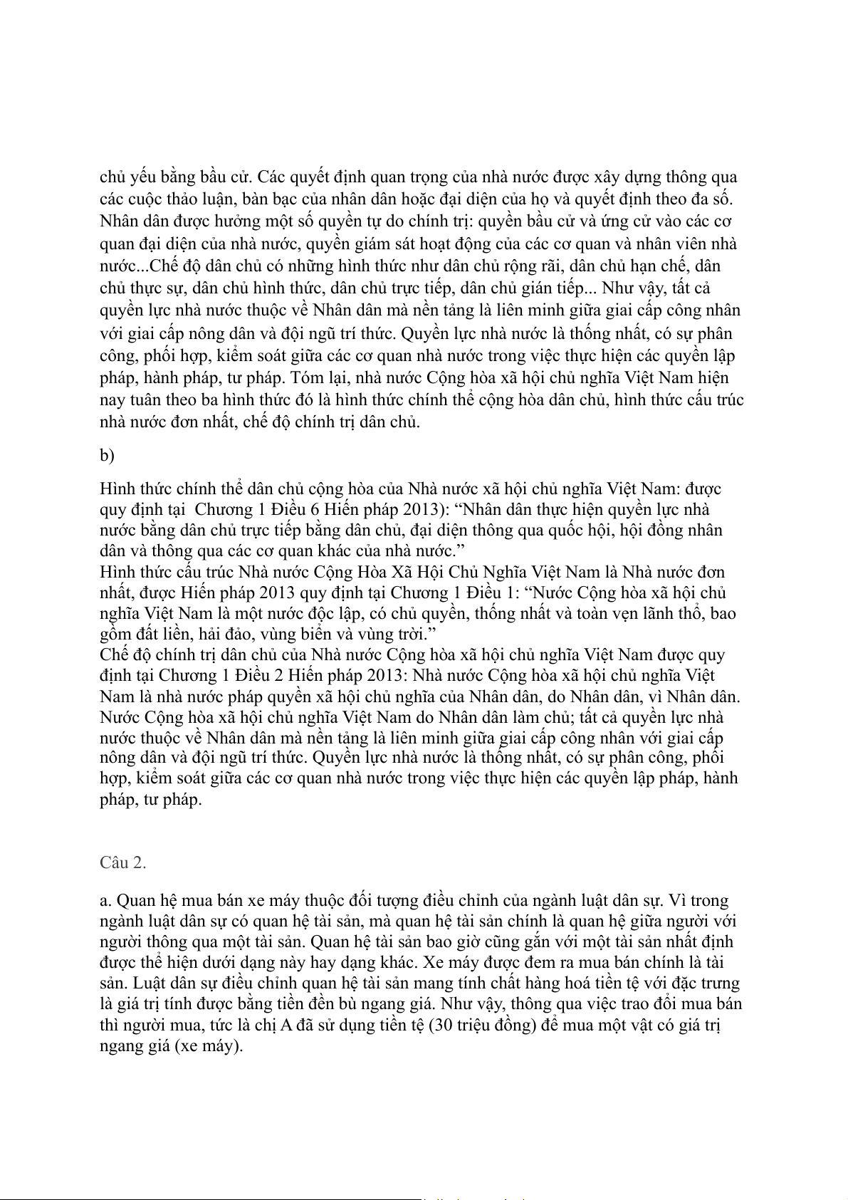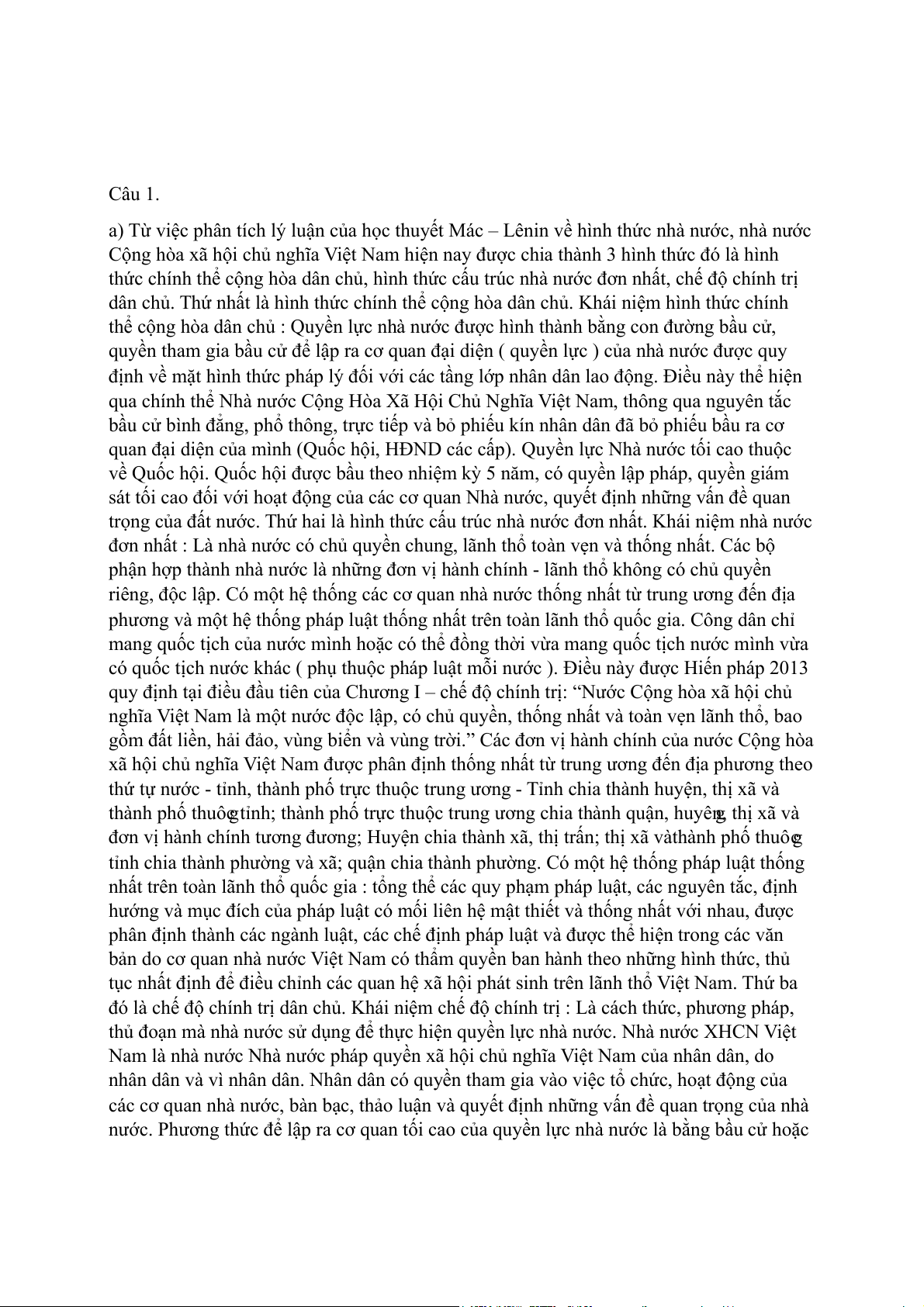 hợp, kiểm soát giữa các cơ quan nhà nước trong việc thực hiện các quyền lập pháp, hành pháp, tư pháp. Câu 2.