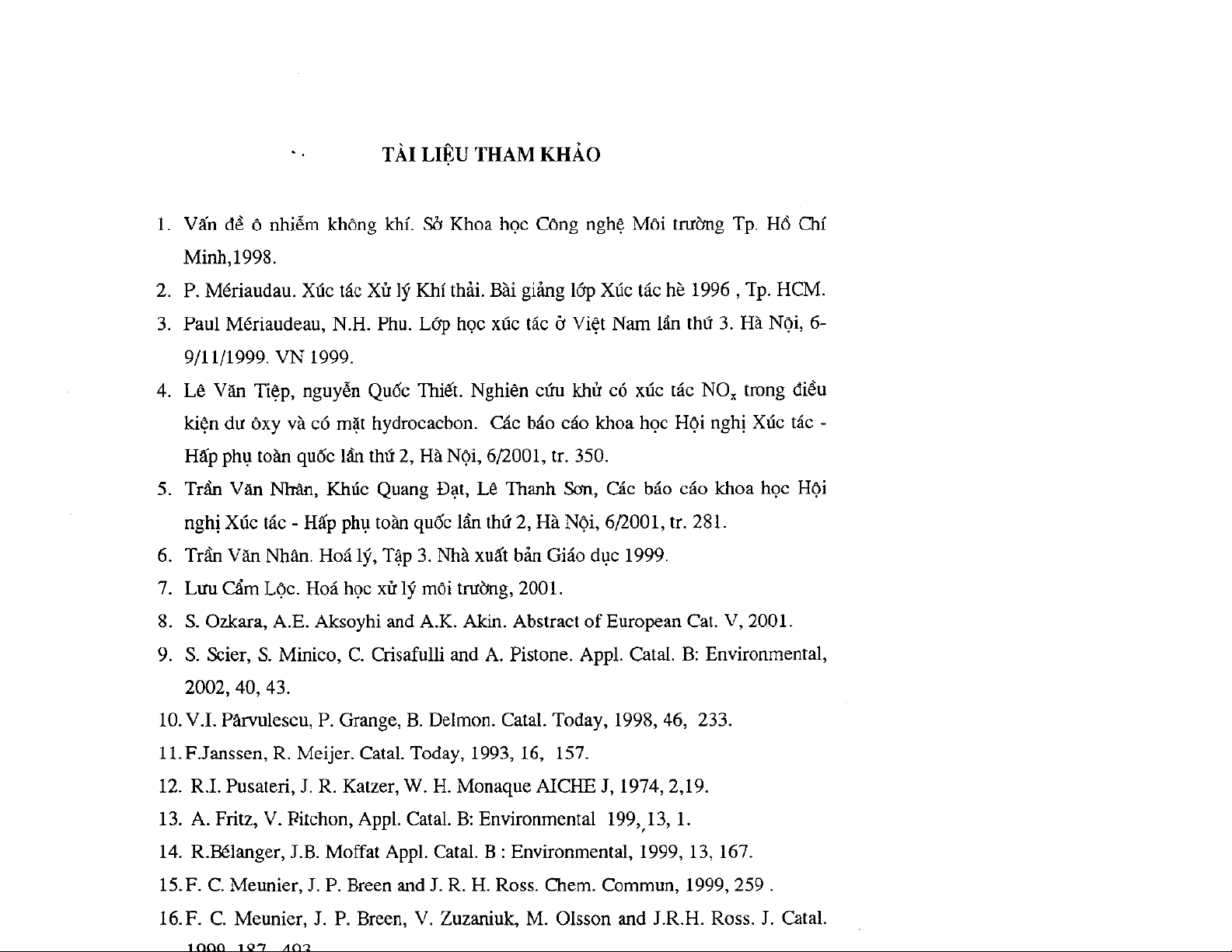 Môn: Xử lý khí thải (HUS) 10 tài liệu