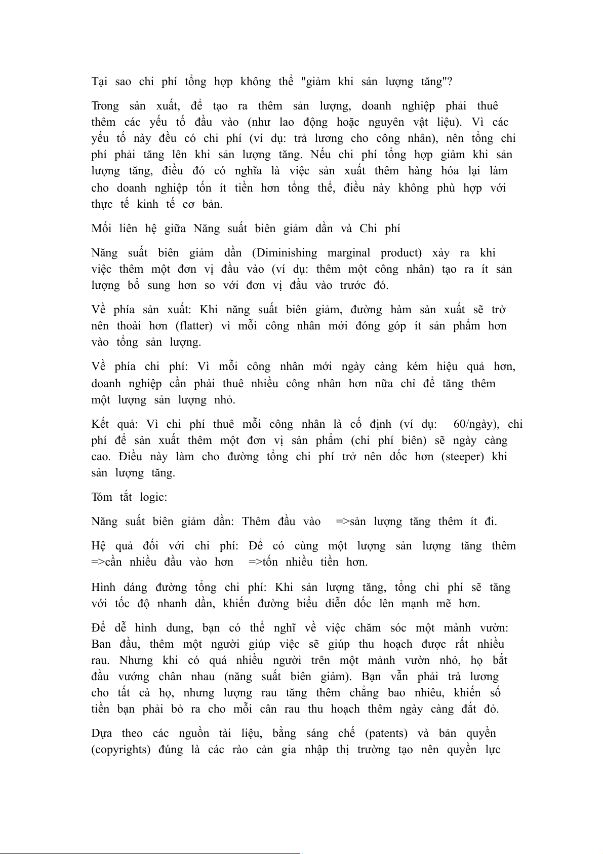 phí phải tăng lên khi sản lượng tăng. Nếu chi phí tổng hợp giảm khi sản