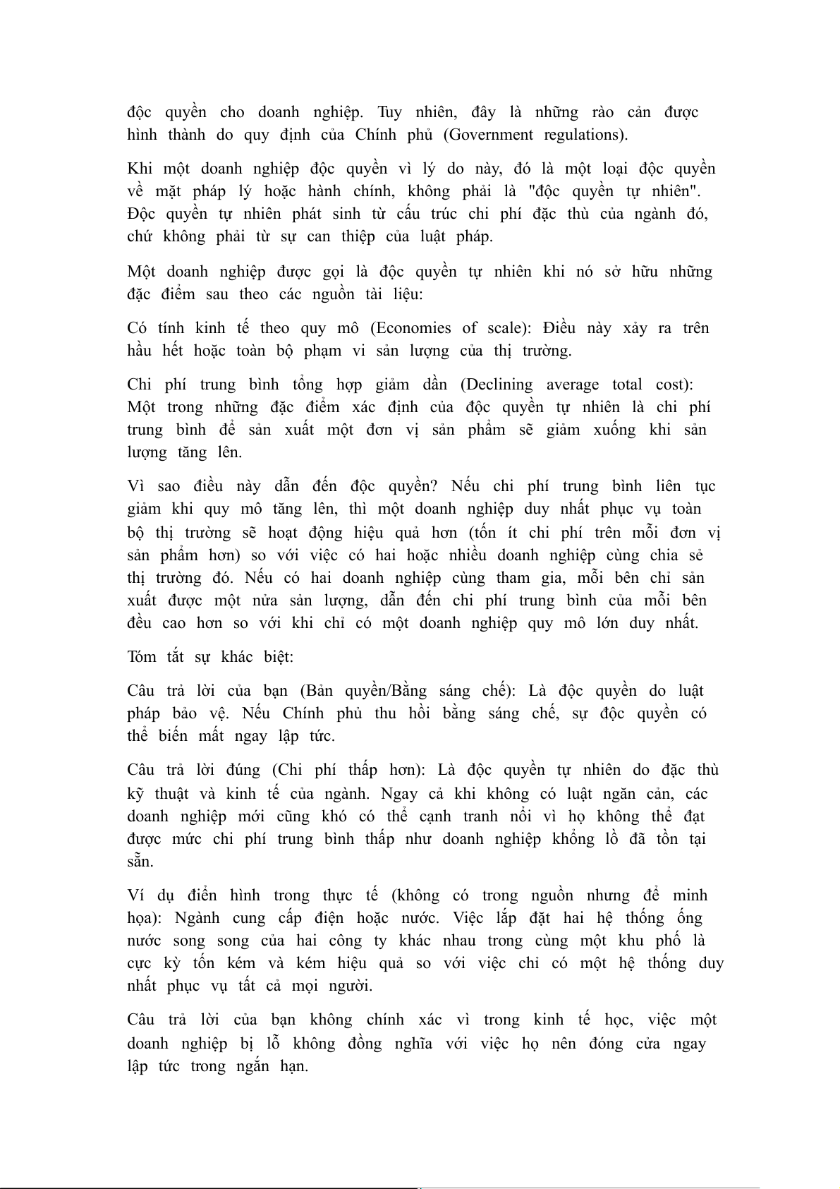 Câu trả lời đúng (Chi phí thấp hơn): Là độc quyền tự nhiên do đặc thù