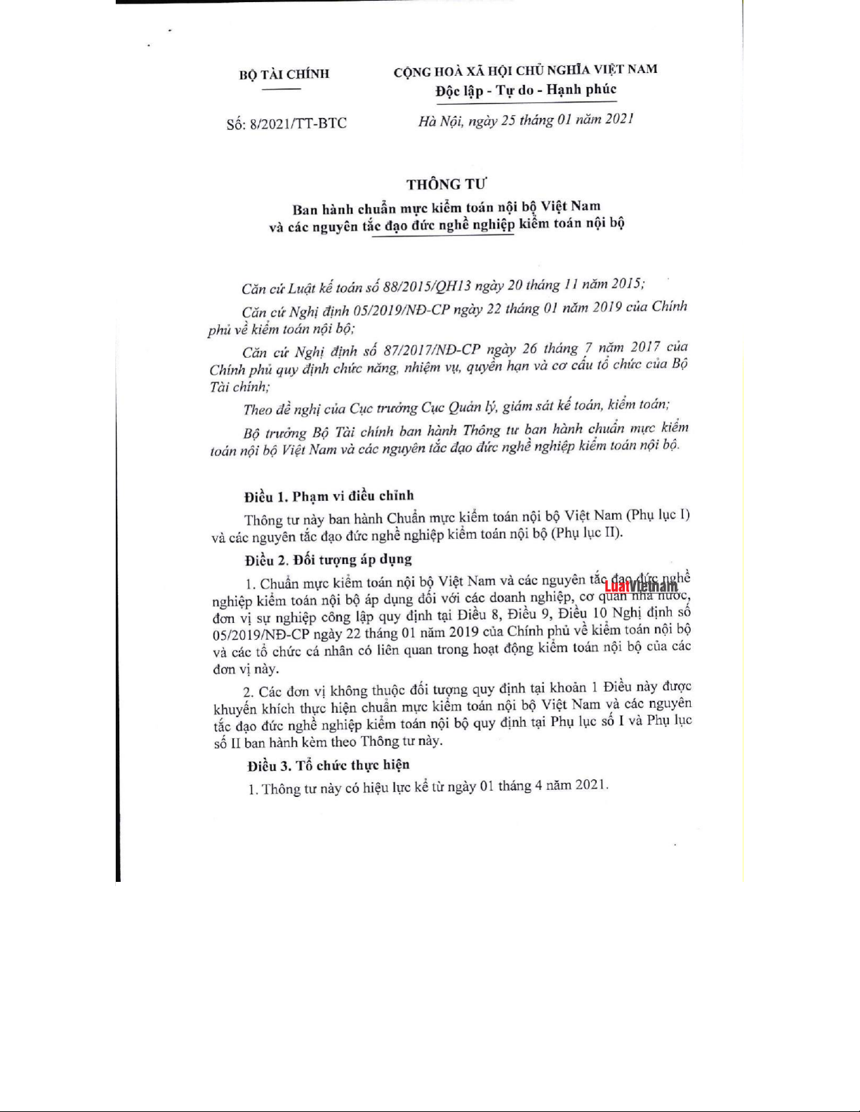 Chỉ Thị 8/2021: Chuẩn Mực Kiểm Toán Nội Bộ Việt Nam môn Kiểm soát nội bộ | Trường Đại học Sư phạm Kỹ thuật Thành phố Hồ Chí Minh