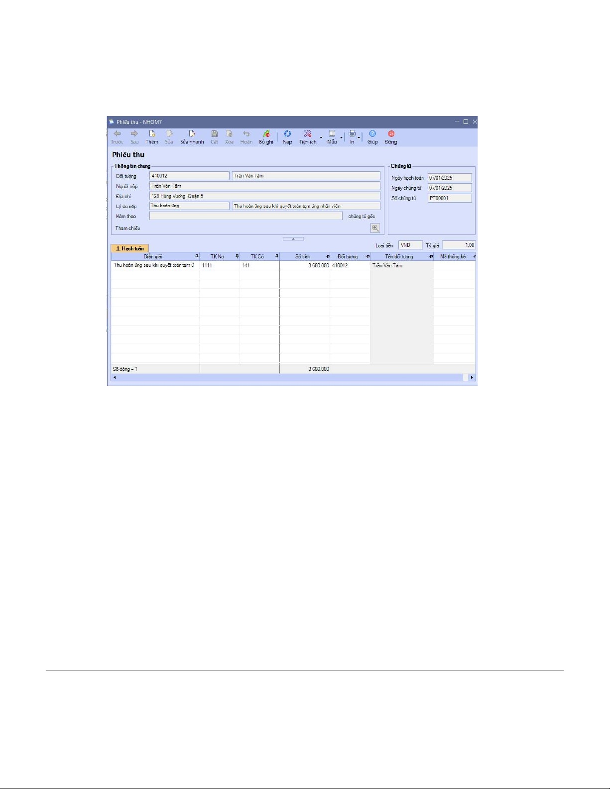 oSố tiền: Nhập theo thực tế.