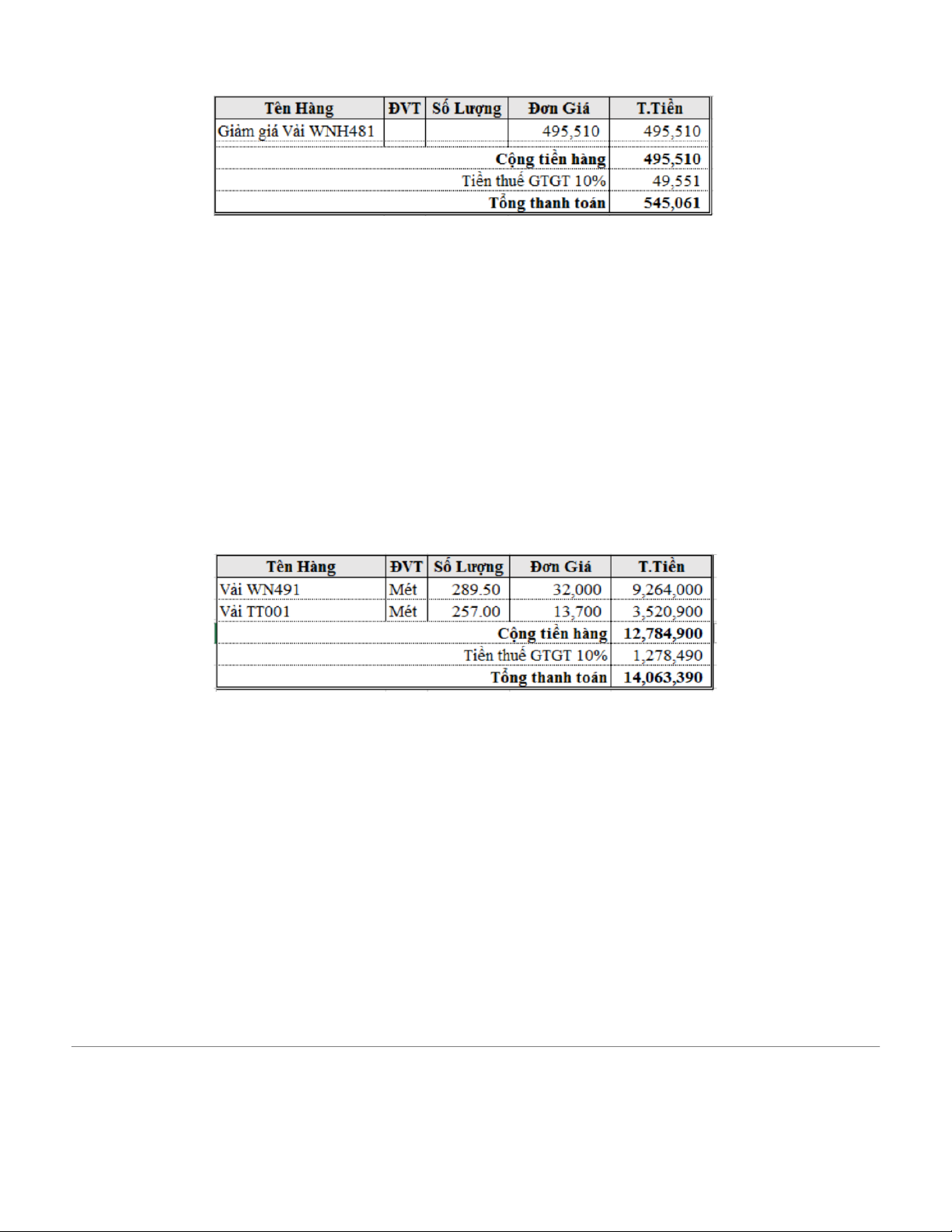 Chọn điều khoản thanh toán 01 1. Hàng tiền Chọn mã hàng 491 Số lượng: 289.5 Đơn giá: 32.000 Chọn mã hàng TT Số lượng: 257 Đơn giá: 13.700 2. Thuế Thuế tự nhảy * Hóa đơn Mẫu số HĐ: 01GTKT0/001 Số HĐ: AA23E-0006525 => CẤT