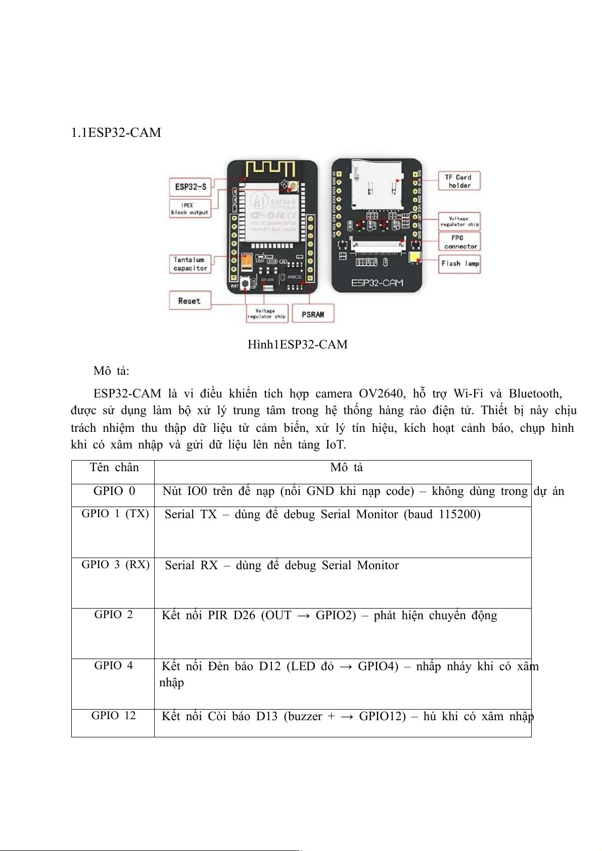 Hình 1 ESP32-CAM Mô tả: