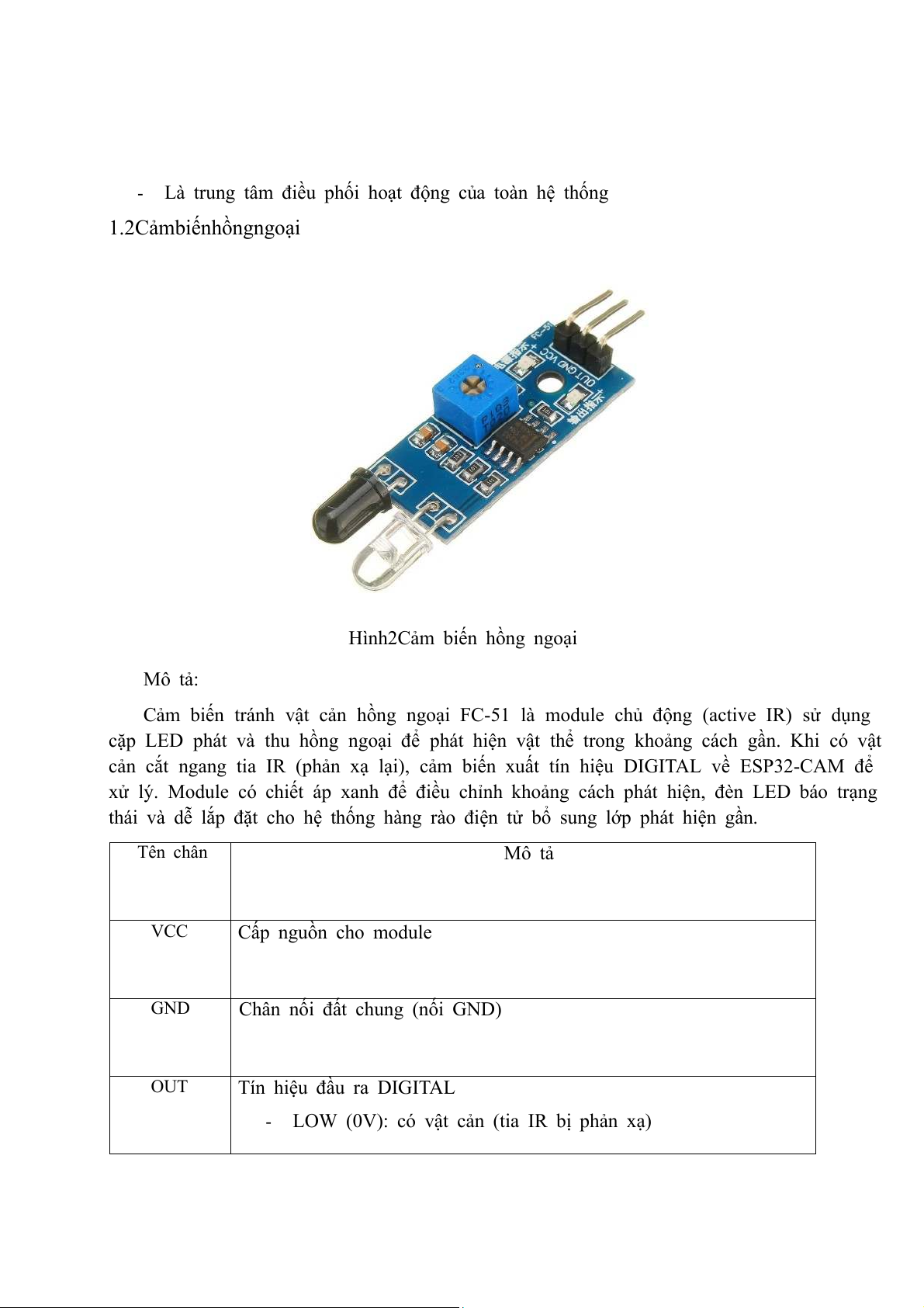 Hình 2 Cảm biến hồng ngoại Mô tả: