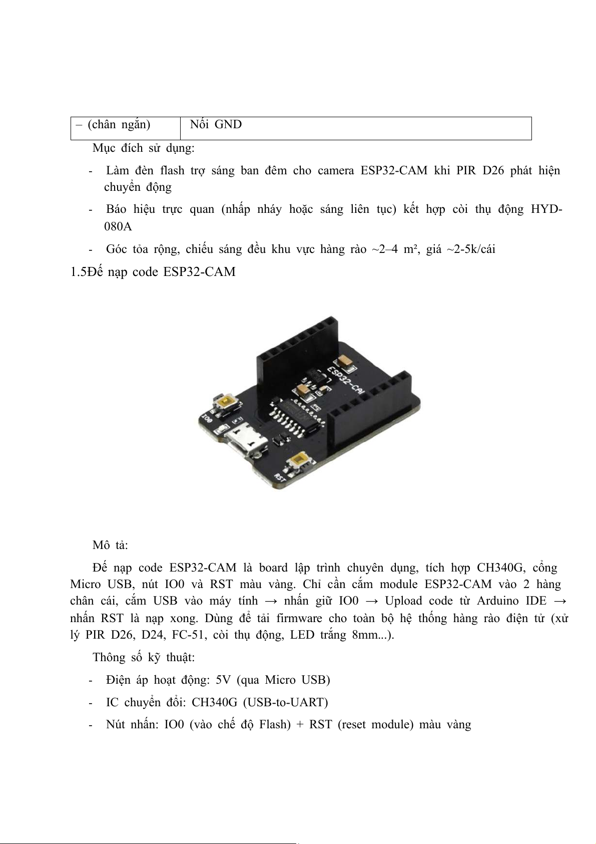 1.5 Đế nạp code ESP32-CAM Mô tả: