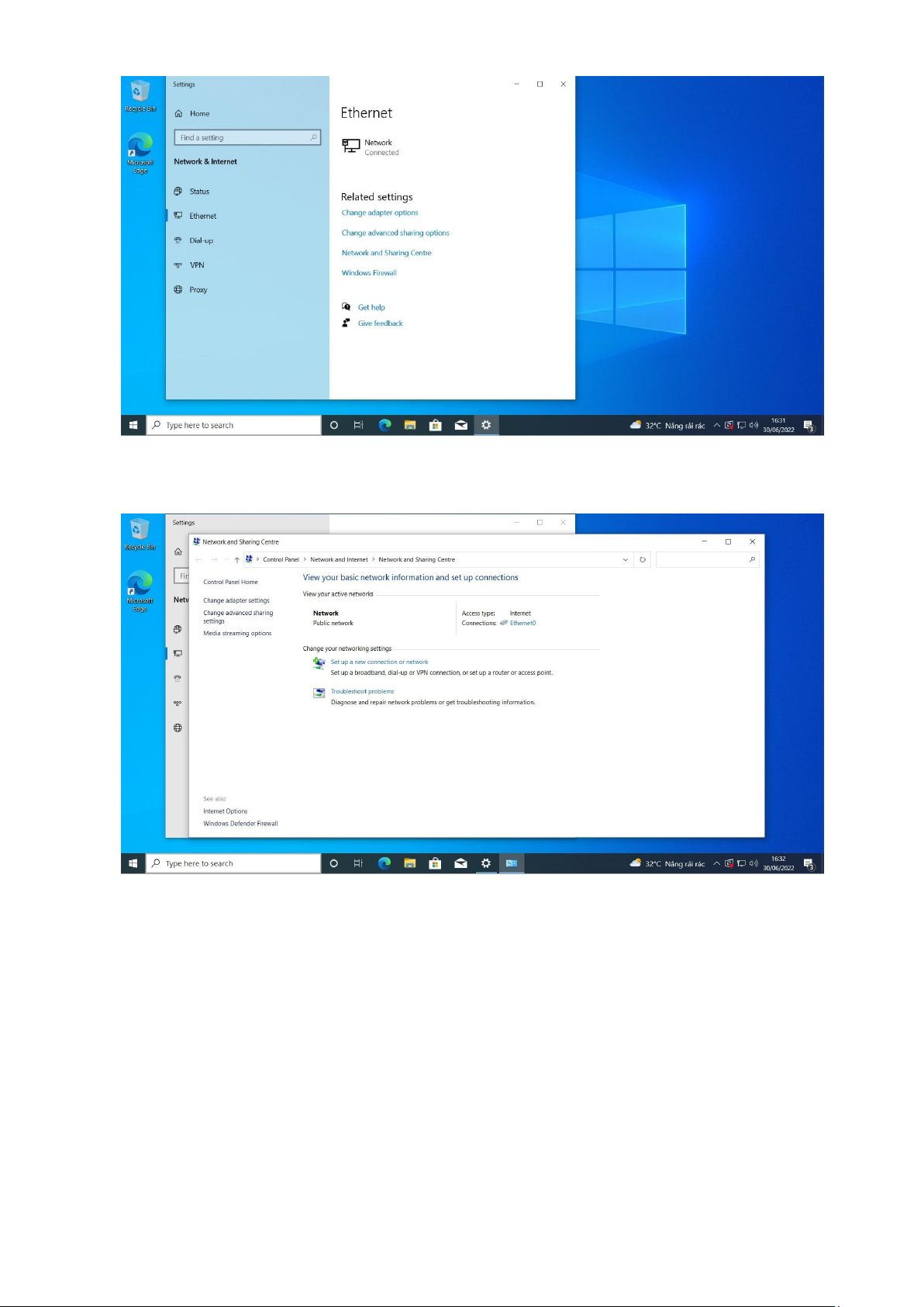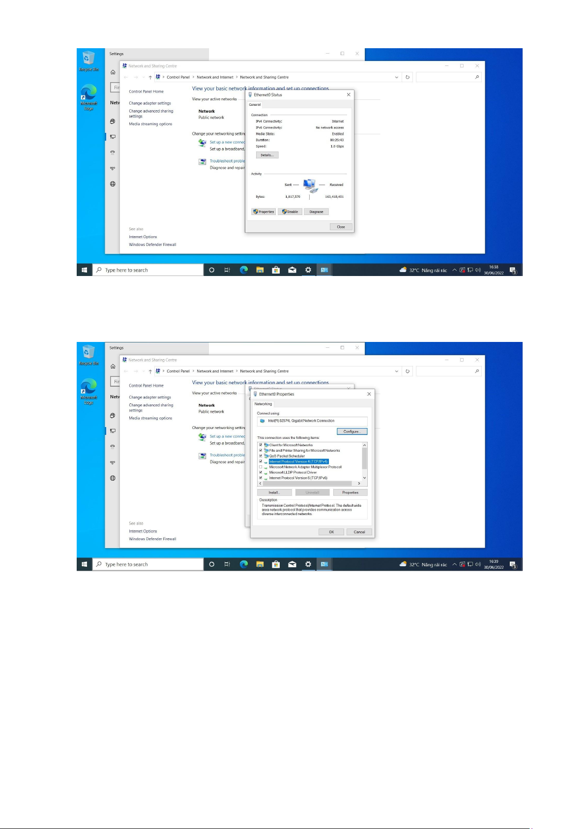 Bước 2:Ethenet->Tại mục Related settings Network and Sharing Centre lOMoAR cPSD| 59691467 Hình 15 Bước 3:Chọn Ethernet0 Hình 16