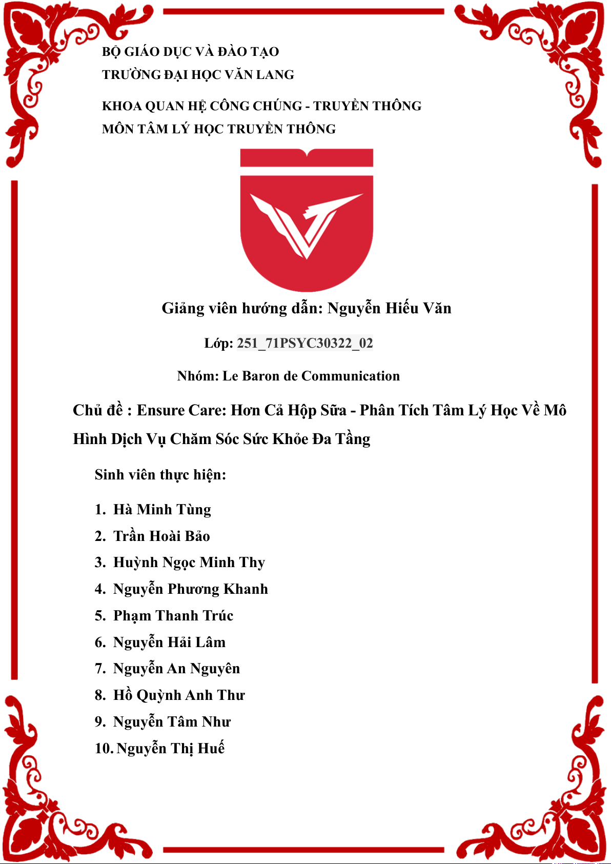 Chủ đề : Ensure Care: Hơn Cả Hộp Sữa - Phân Tích Tâm Lý Học Về Mô