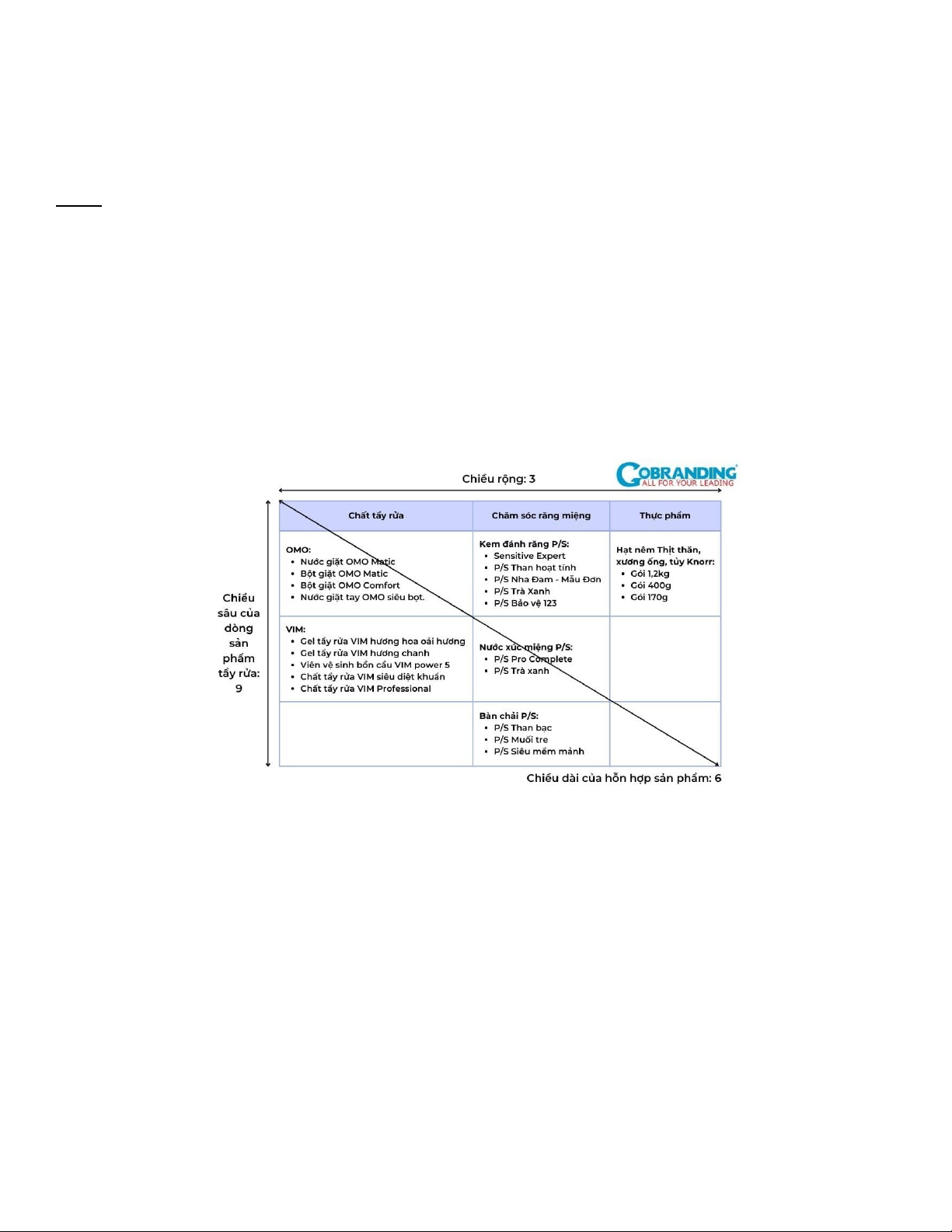 Ví dụ : dòng sản phẩm chăm sóc da Pond’s (sữa rửa mặt, kem dưỡng da, nước tẩy trang,…), dòng