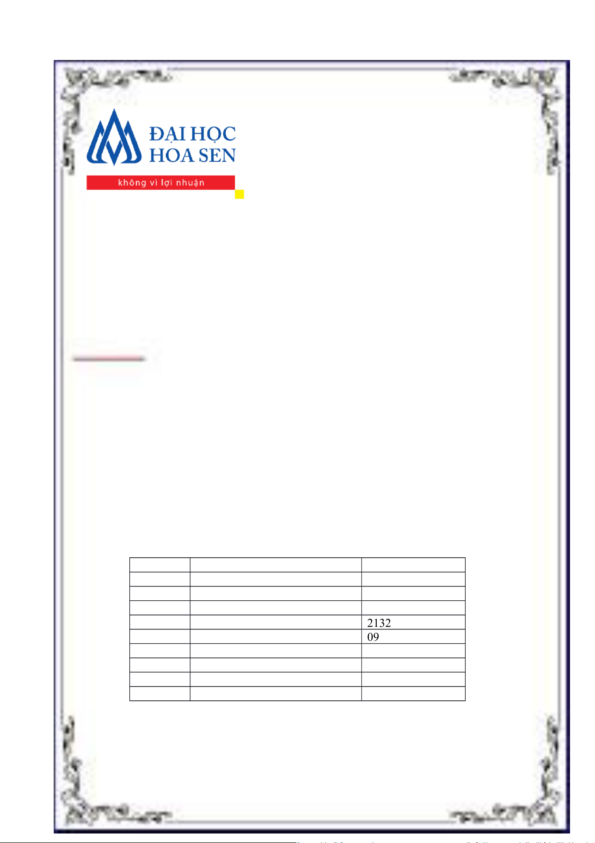 Lê Nguyễn Hoàng Thịnh Hưng 2132075 5 Nguyễn Quỳnh Thiên Thanh 093767 6 Ngô Chí Bảo 2142989 7 Nguyễn Lê Thủy Trúc 2132243 8 Nguyễn Lê Minh Nhựt 2133688 9 Trương Văn Linh 2132110 TP.HCM 22/05/2016 1 lOMoAR cPSD| 47206521