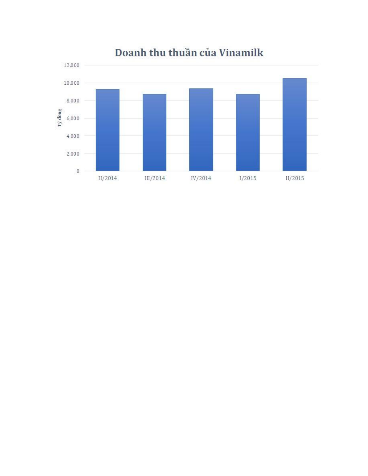 Hình 18: Biểu đồ doanh thu thuần của Vinamilk từ Qúy II/2014 – Qúy II/2015