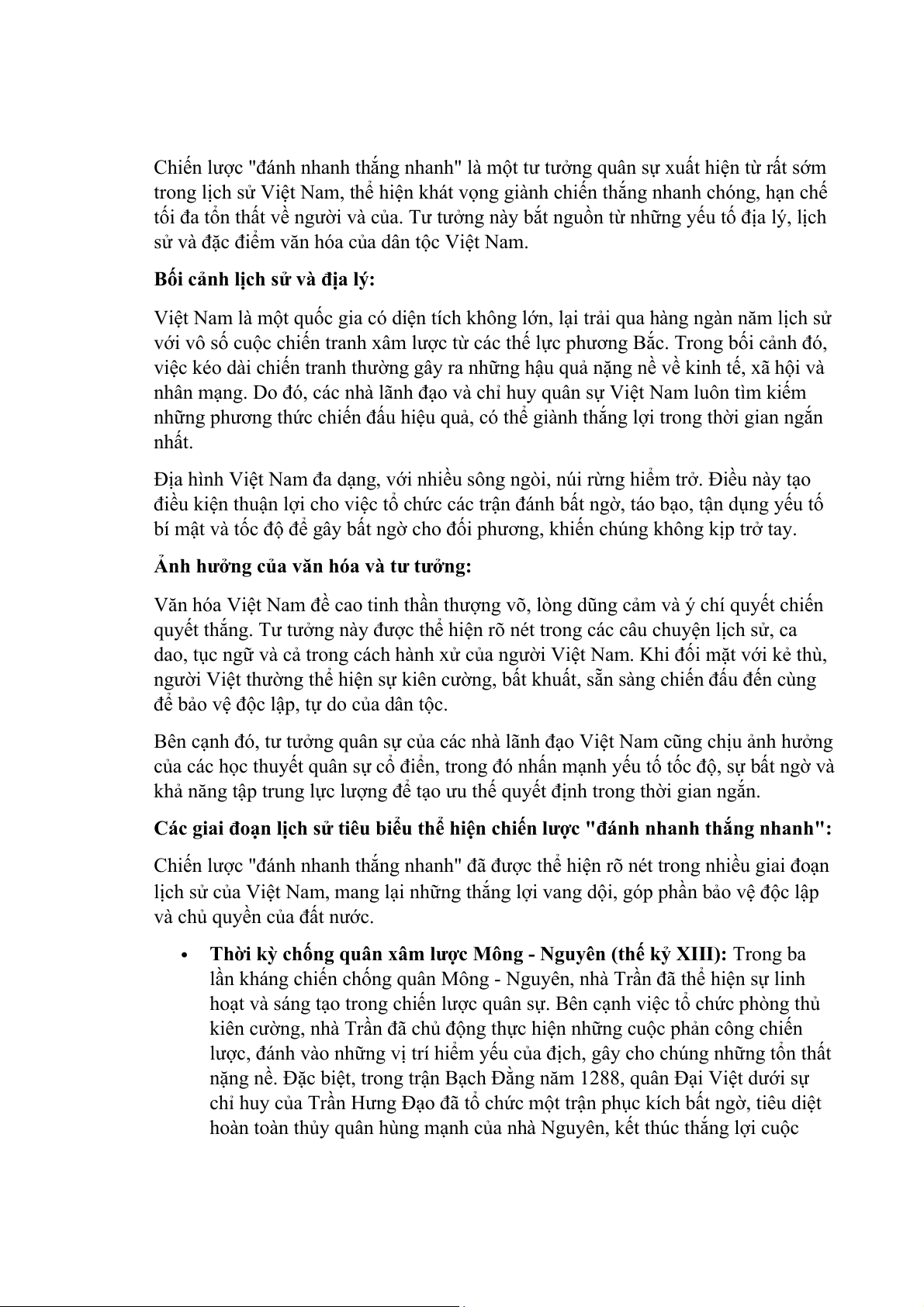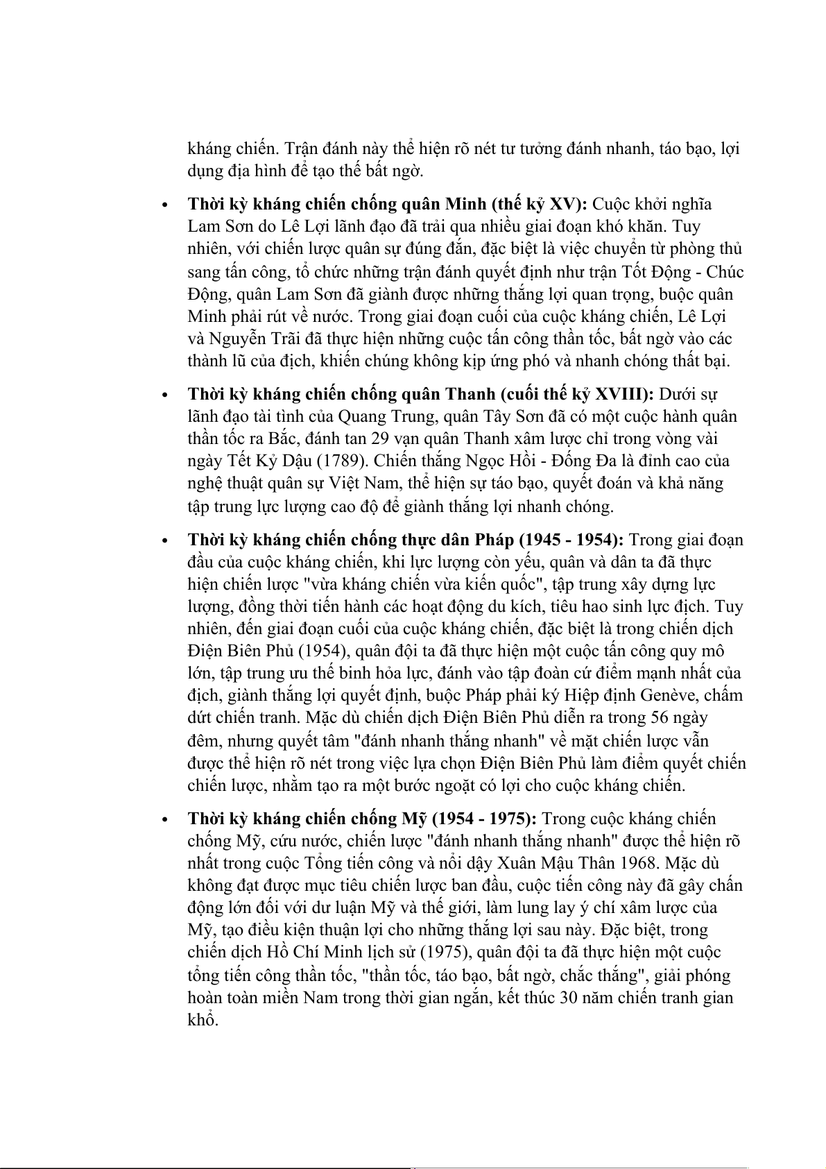 trong lịch sử Việt Nam, thể hiện khát vọng giành chiến thắng nhanh chóng, hạn chế