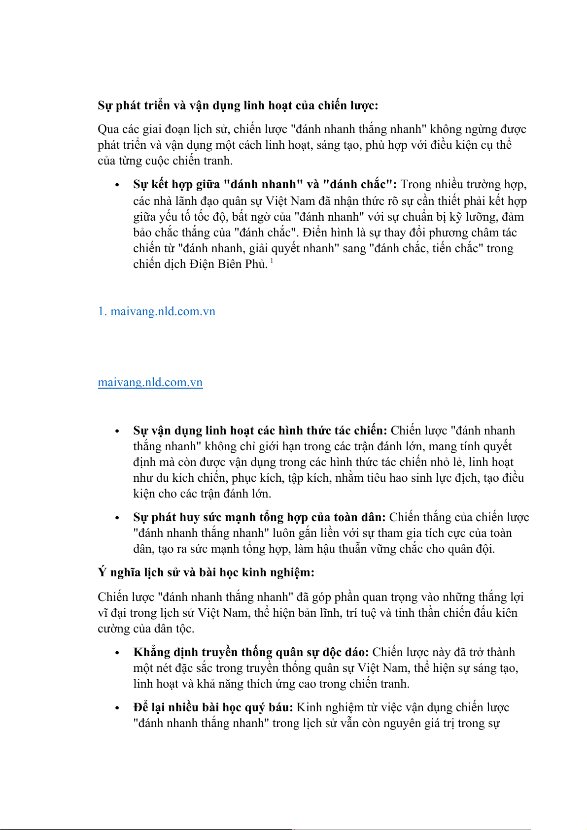 "đánh nhanh thắng nhanh" trong lịch sử vẫn còn nguyên giá trị trong sự