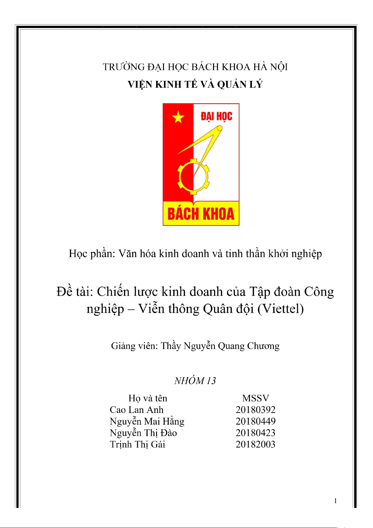 doanh và tinh thần khởi nghiệp, nhóm 13 chúng em đã thực hiện một bài tập lớn với đề tài :