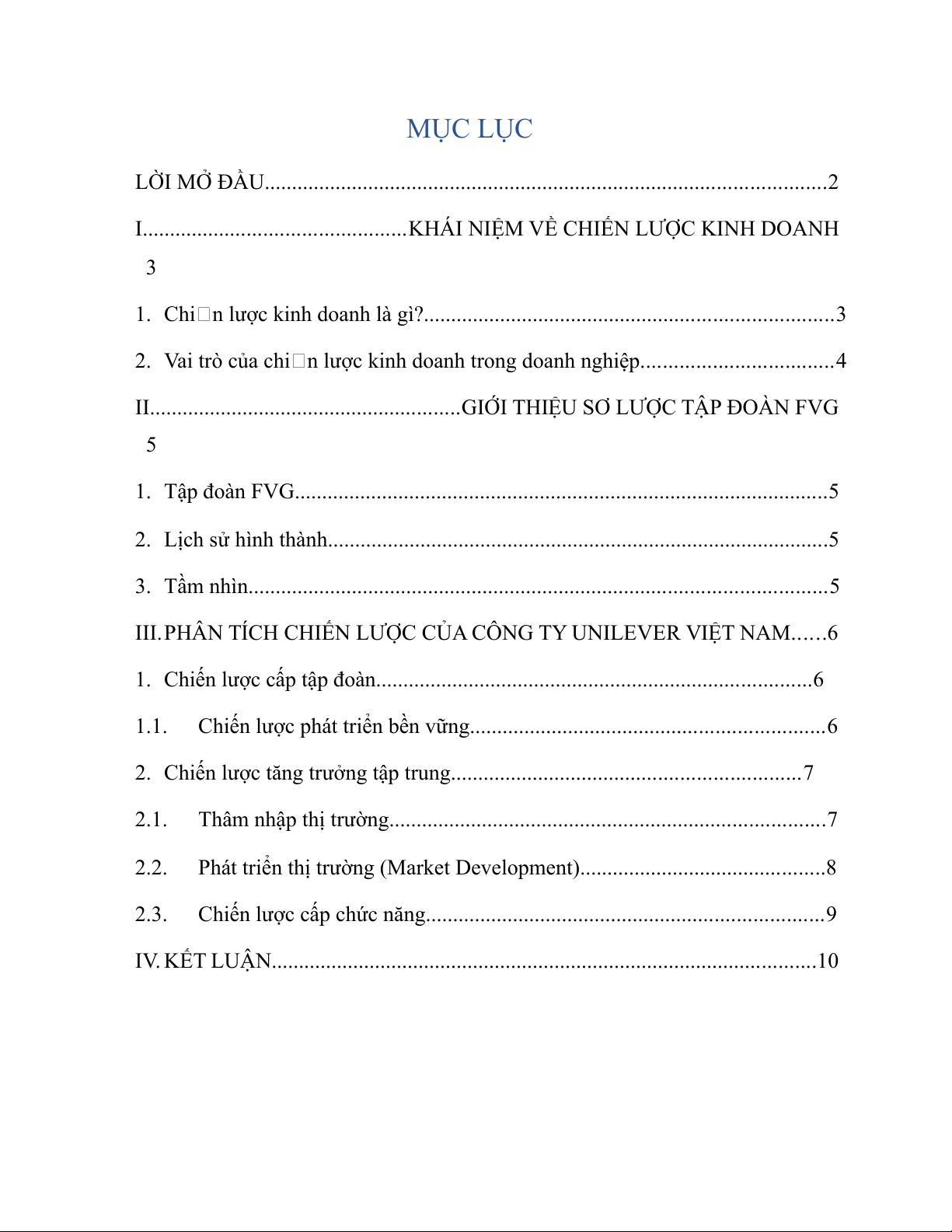 III.PHÂN TÍCH CHIẾN LƯỢC CỦA CÔNG TY UNILEVER VIỆT NAM......6
