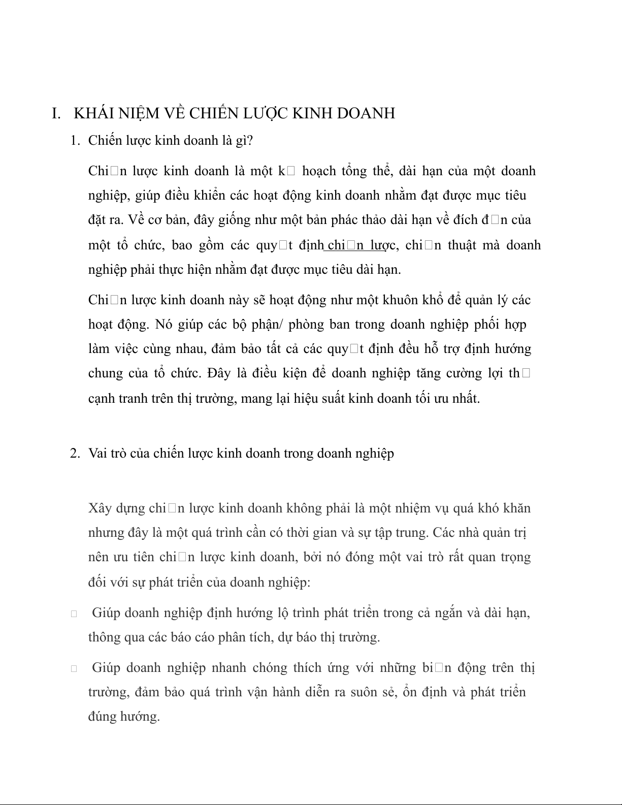 I. KHÁI NIỆM VỀ CHIẾN LƯỢC KINH DOANH