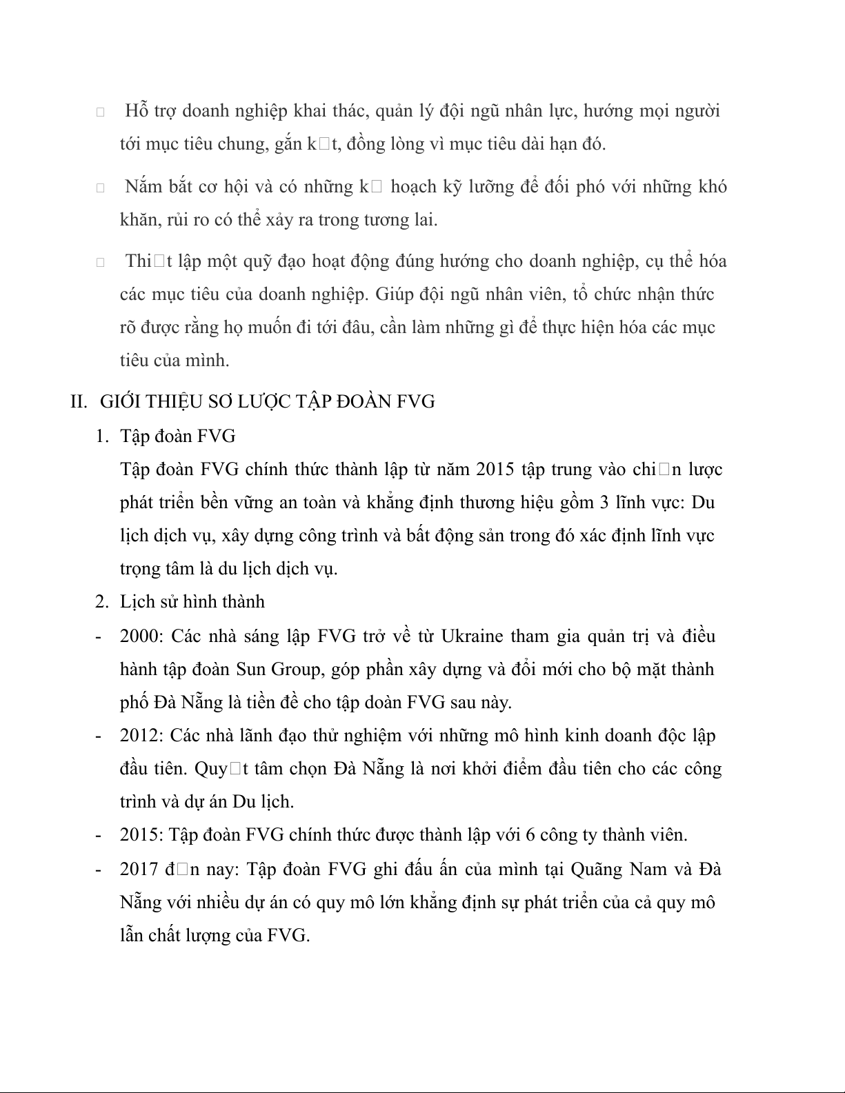 tuyên bố nhiệm vụ của tập đoàn: “tập đoàn FVG sẽ được bi t đ n là tập đoàn