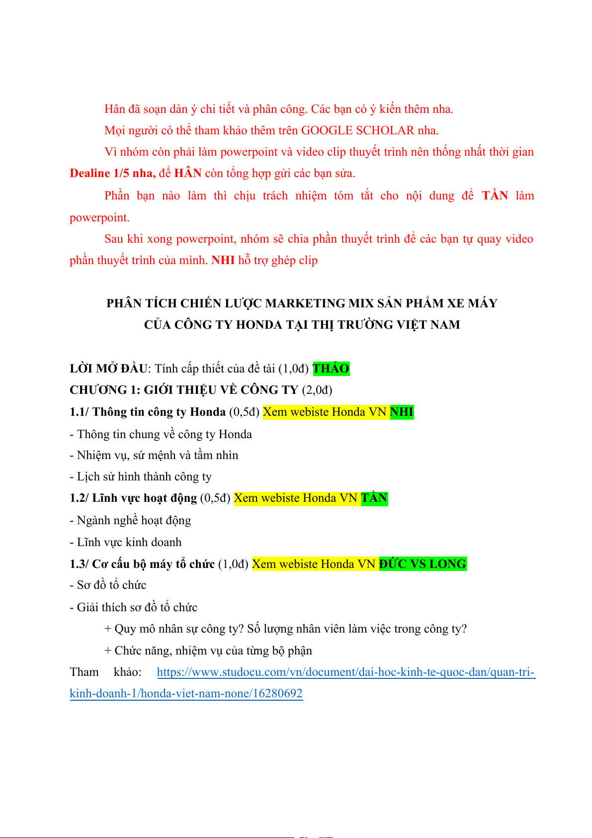 Hân đã soạn dàn ý chi tiết và phân công. Các bạn có ý kiến thêm nha.