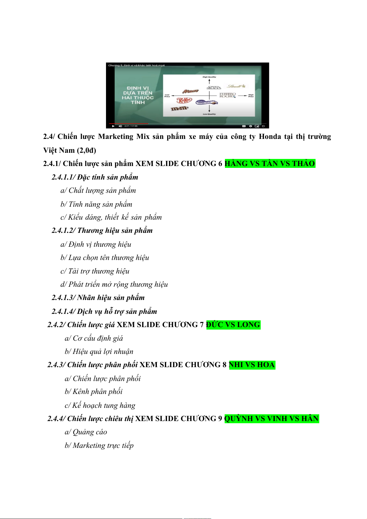 2.4/ Chiến lược Marketing Mix sản phẩm xe máy của công ty Honda tại thị trường Việt Nam (2,0đ)