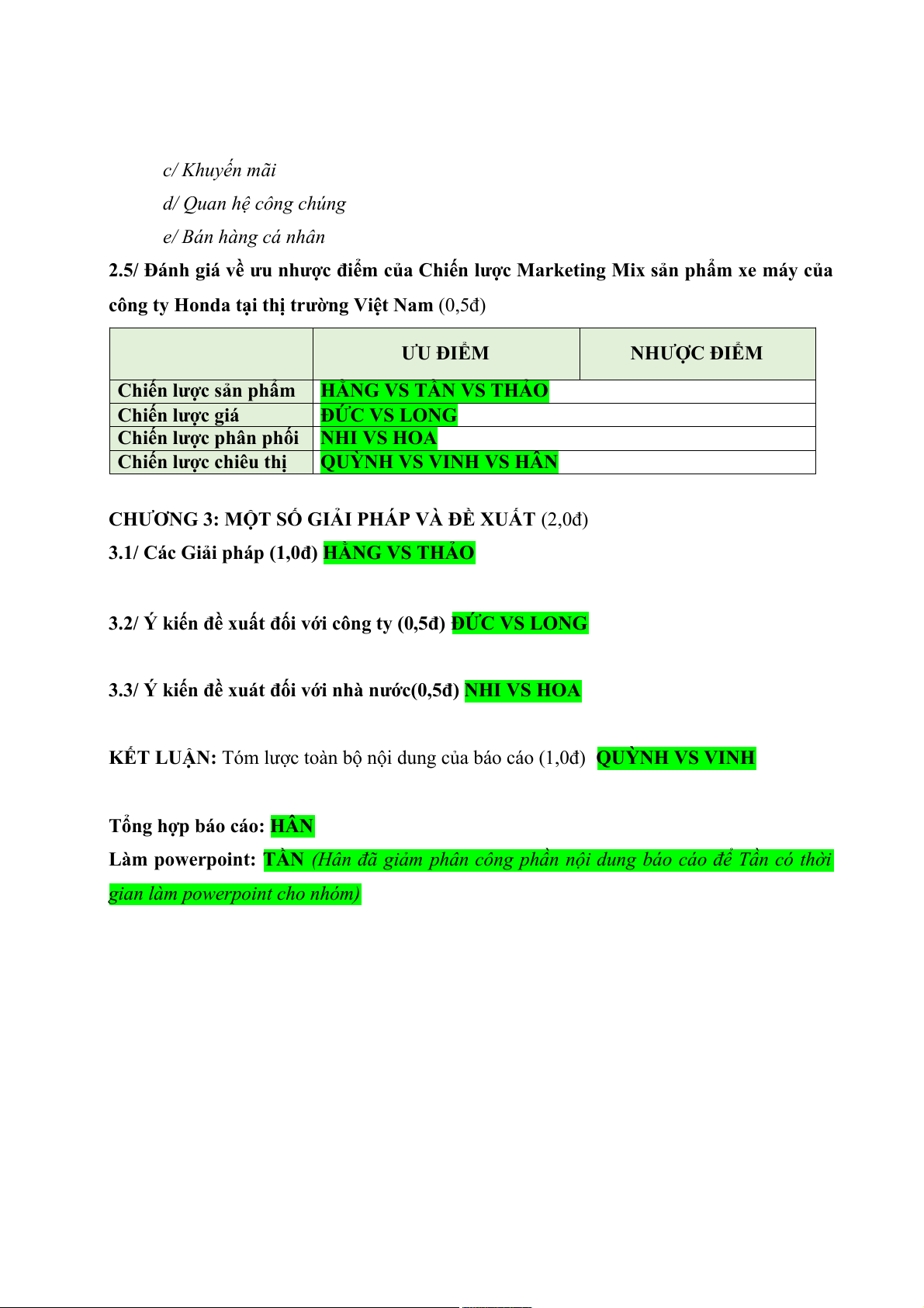 Làm powerpoint: TẦN (Hân đã giảm phân công phần nội dung báo cáo để Tần có thời