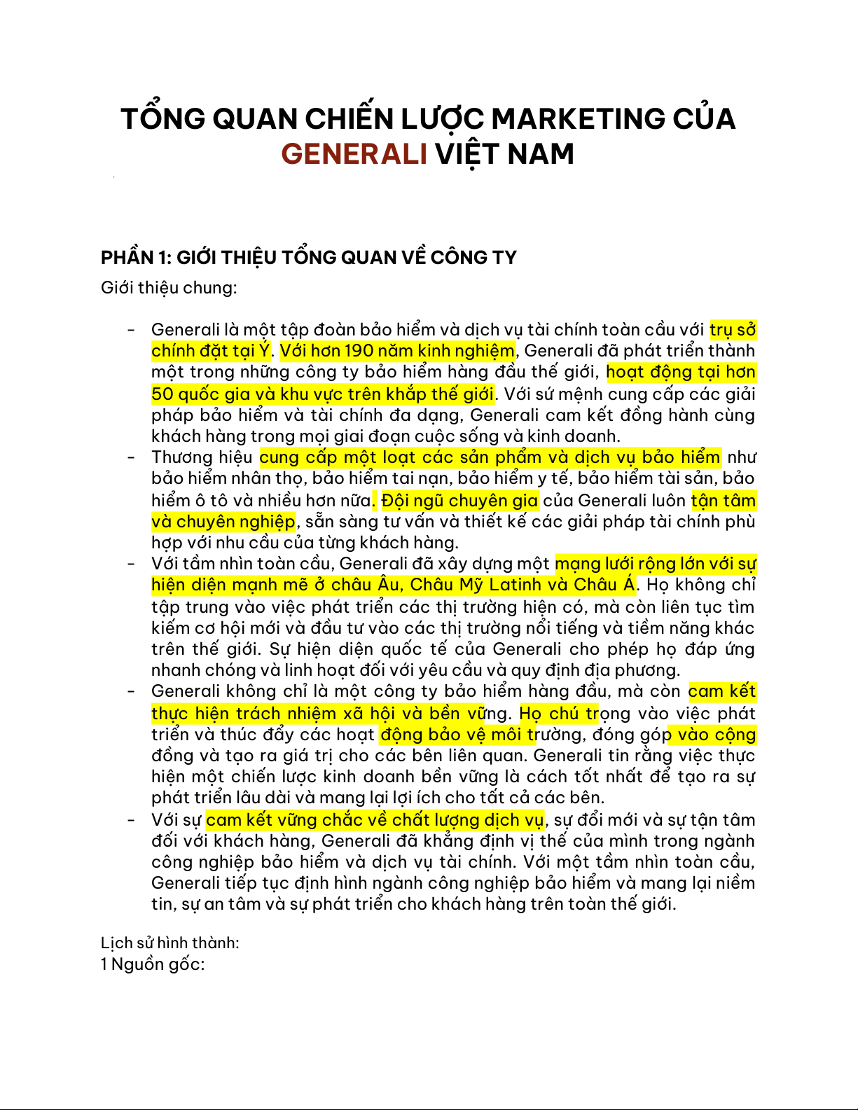TỔNG QUAN CHIẾN LƯỢC MARKETING CỦA GENERALI VIỆT NAM