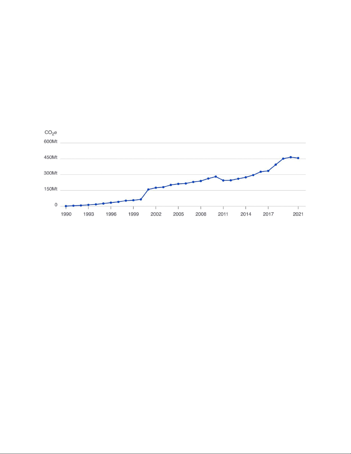 GHG tăng nhanh nhất, chủ yếu do sự phụ thuộc lớn vào than đá trong sản xuất điện và mở