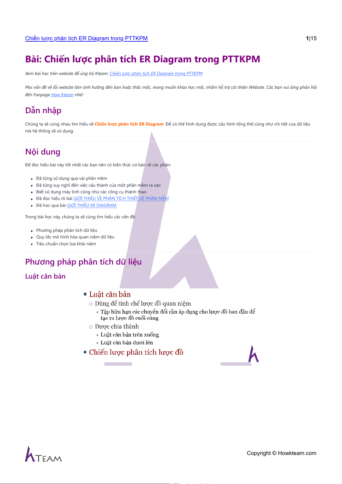 Phương pháp phân tích dữ liệu Luật căn bản Copyright © Howkteam.com