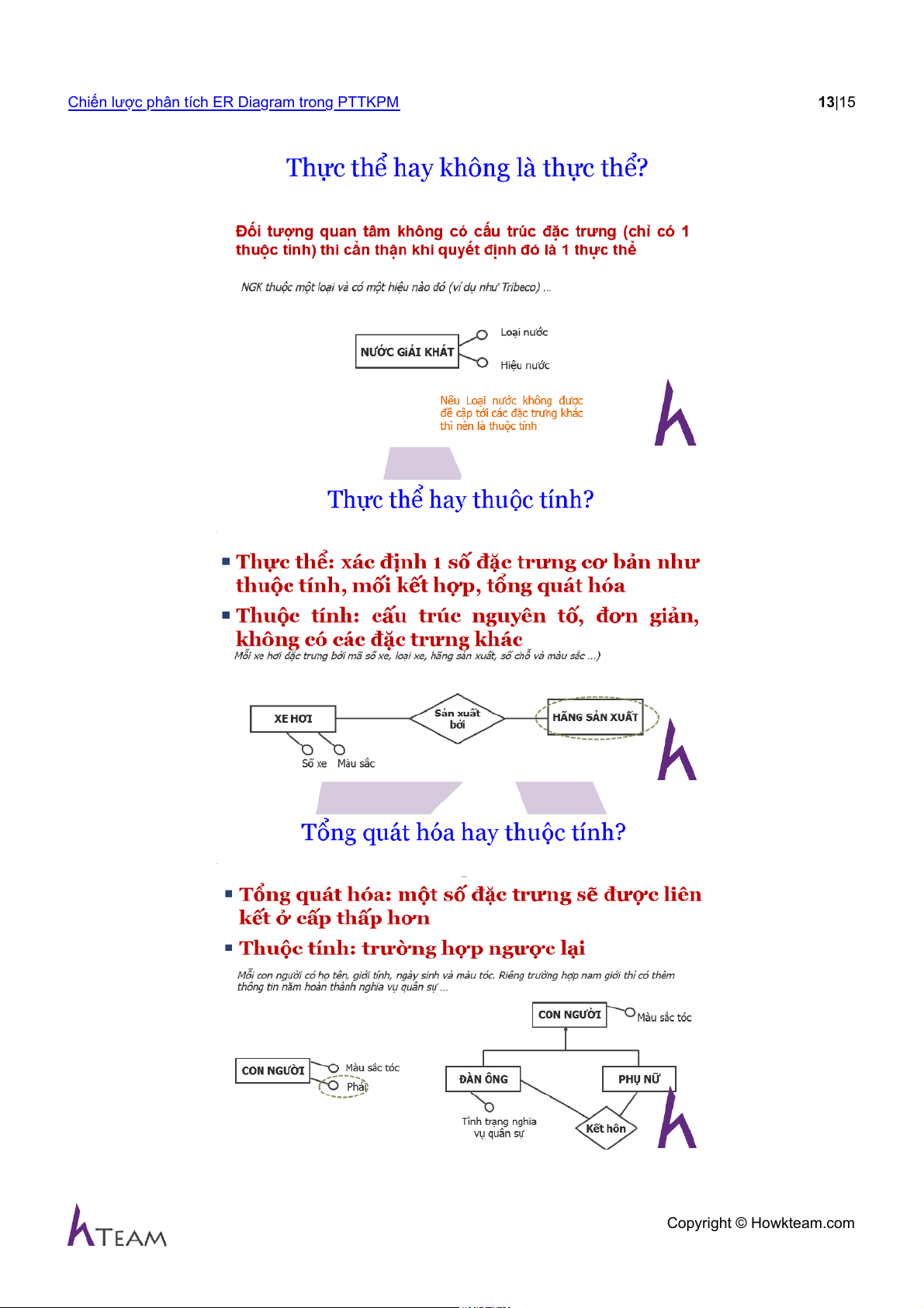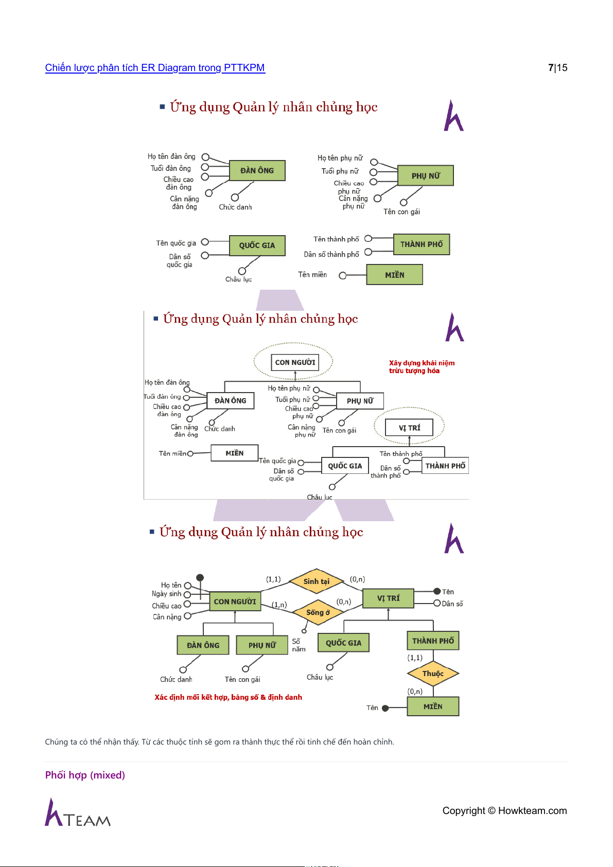 Chúng ta có thể nhận thấy. Từ các thuộc tính sẽ gom ra thành thực thể rồi tinh chế đến hoàn chỉnh. Phối hợp (mixed) Copyright © Howkteam.com