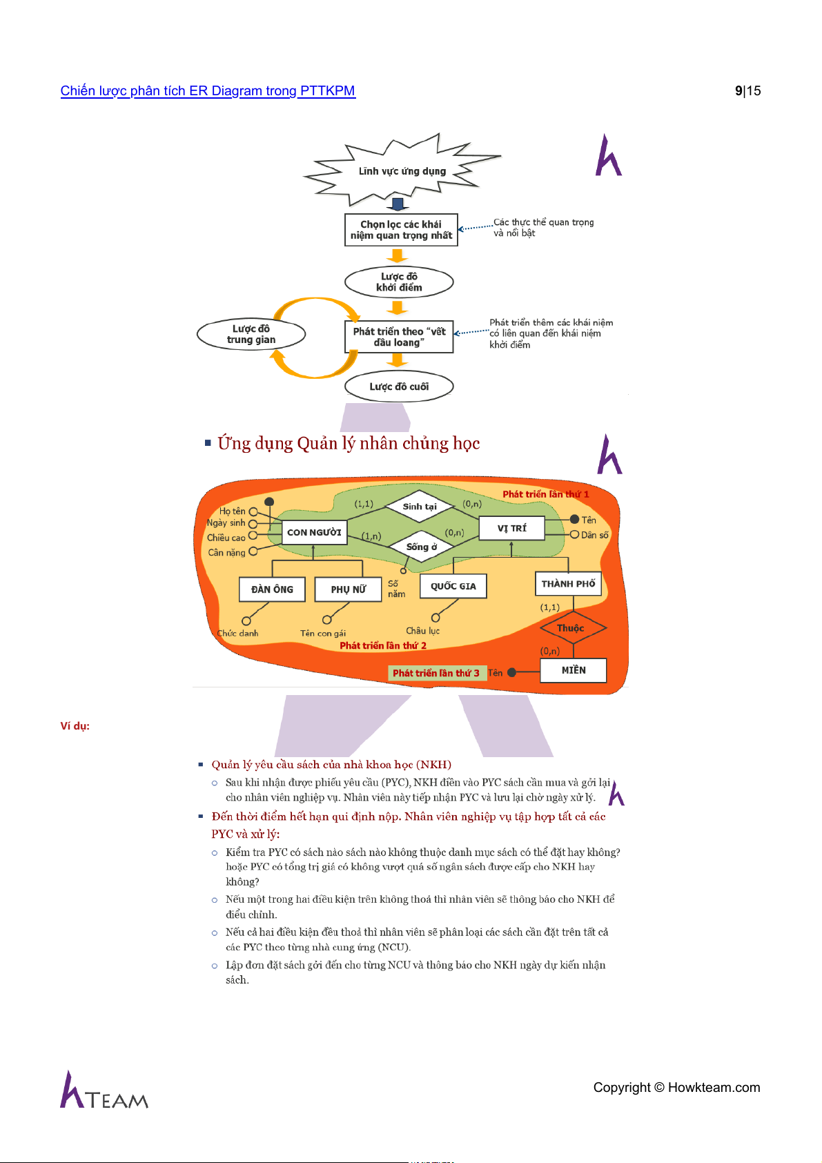 Chiến lược phân tích ER Diagram trong PTTKPM 9|15 Ví dụ: Copyright © Howkteam.com