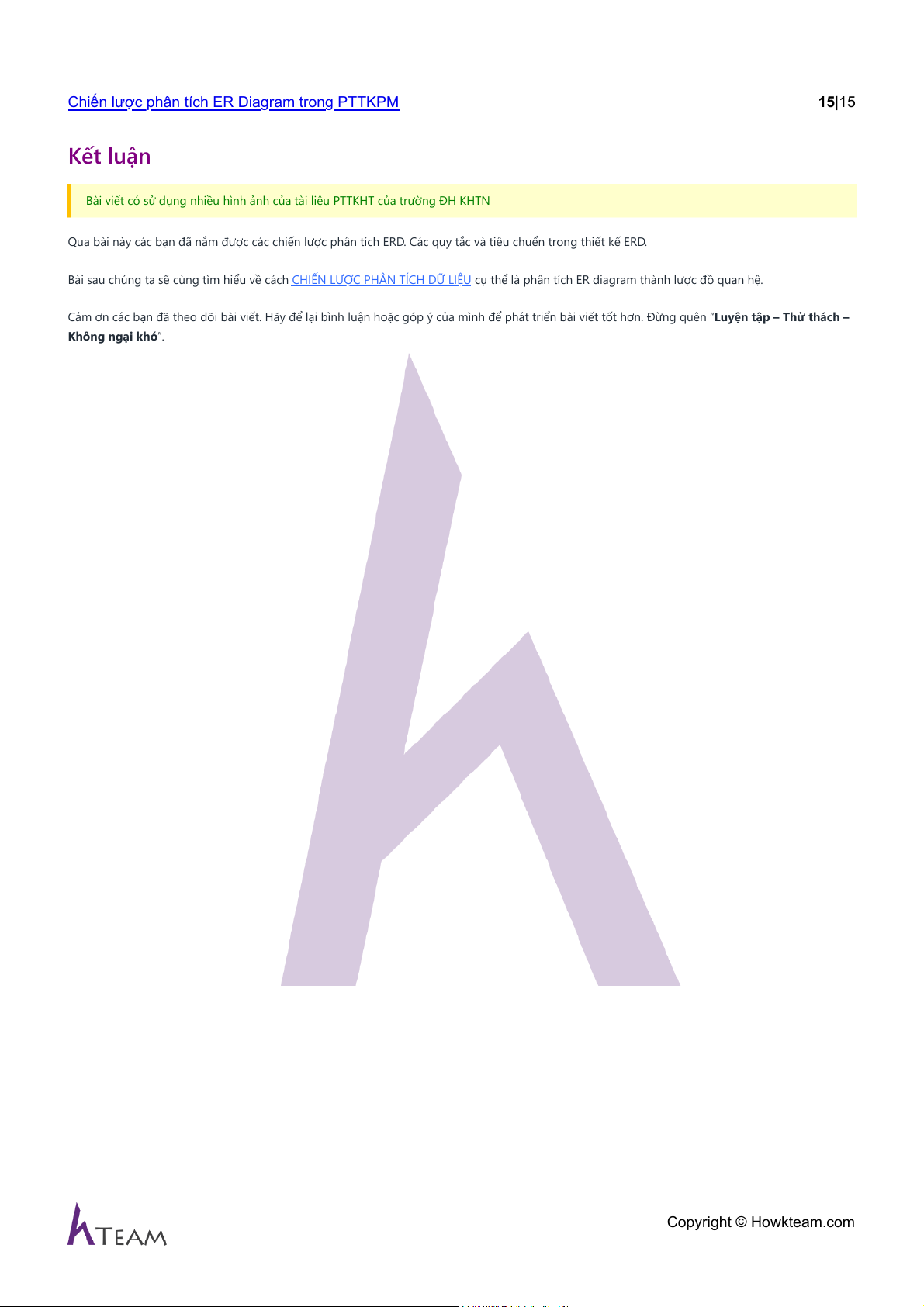Chiến lược phân tích ER Diagram trong PTTKPM 15|15 Kết luận