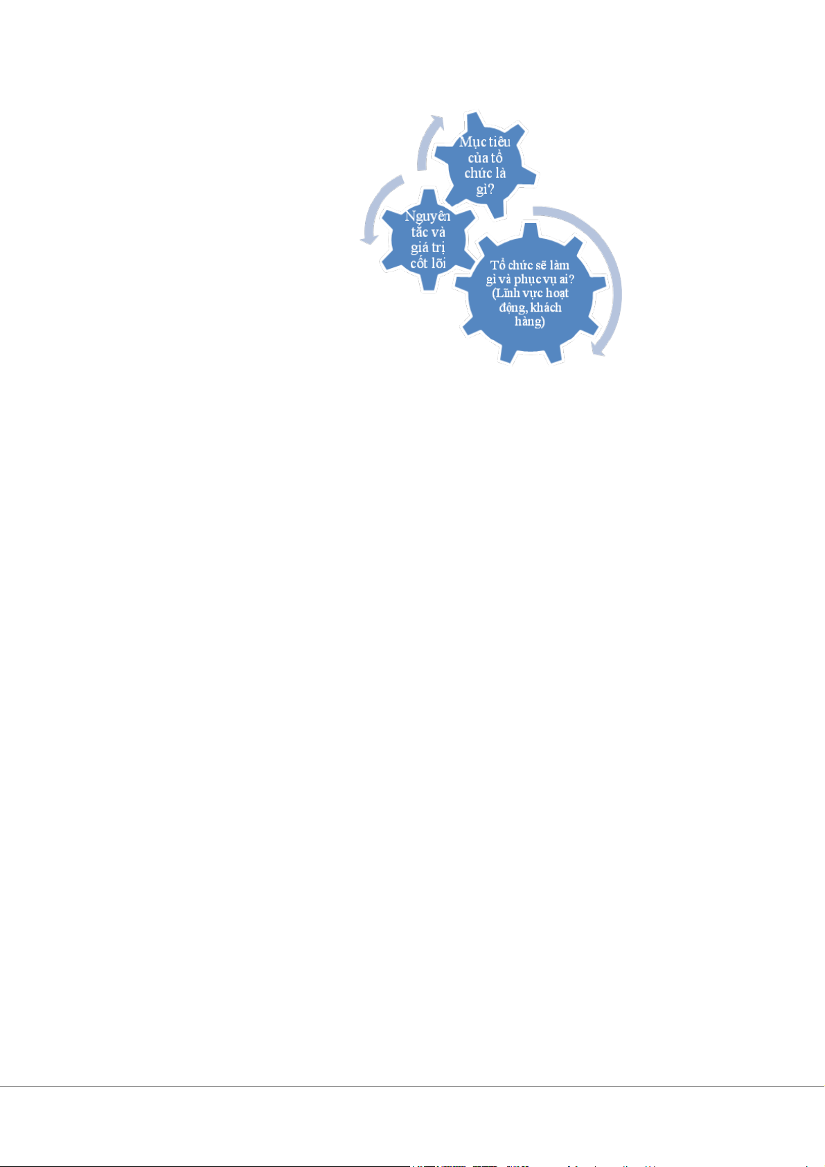 câu hỏi sau: (i) Mục tiêu của tổ chức là gì?; (ii) Tổ chức sẽ làm gì và phục vụ ai?
