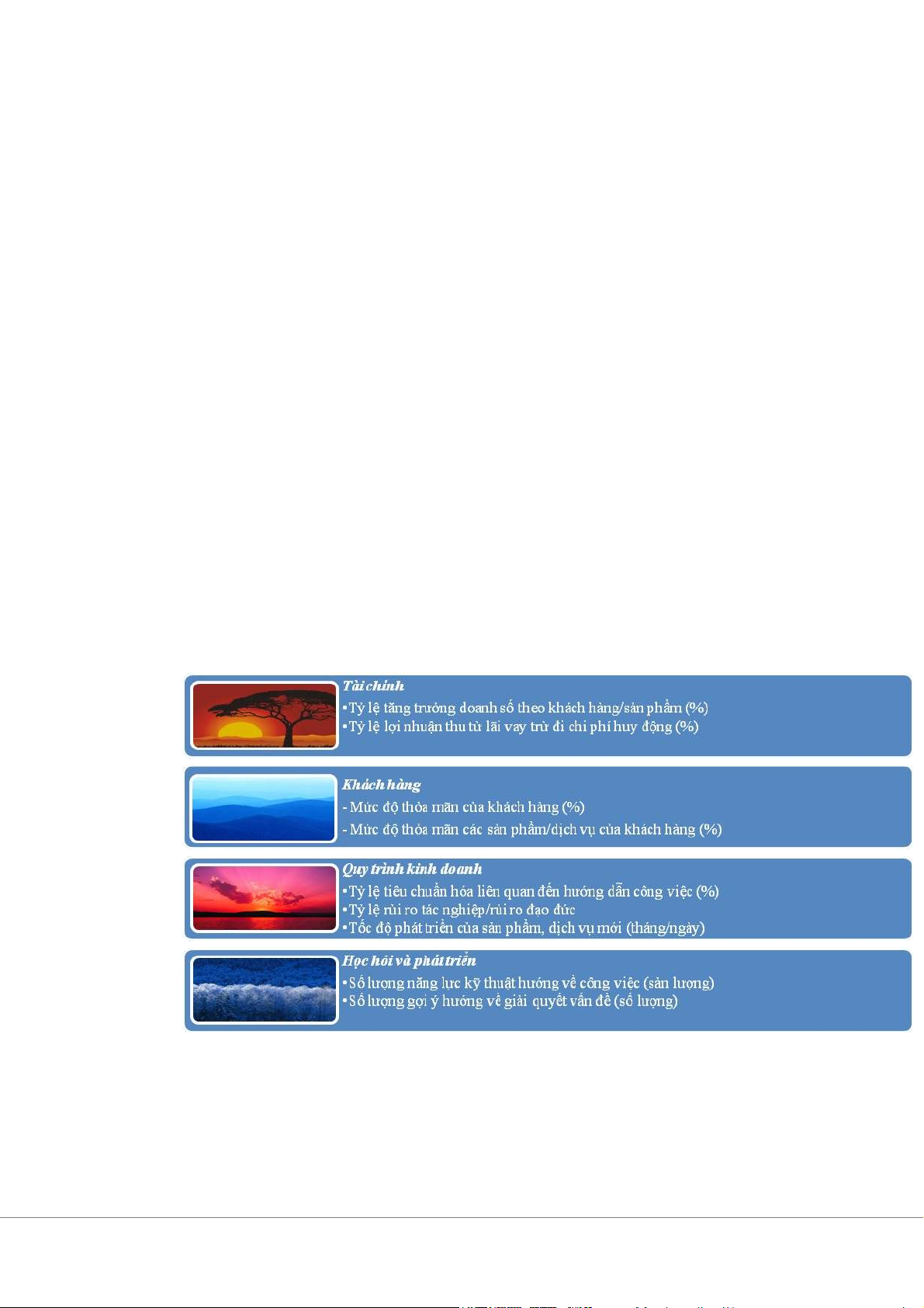 về tài chính, khách hàng, quy trình kinh doanh, học hỏi và phát triển) còn tùy