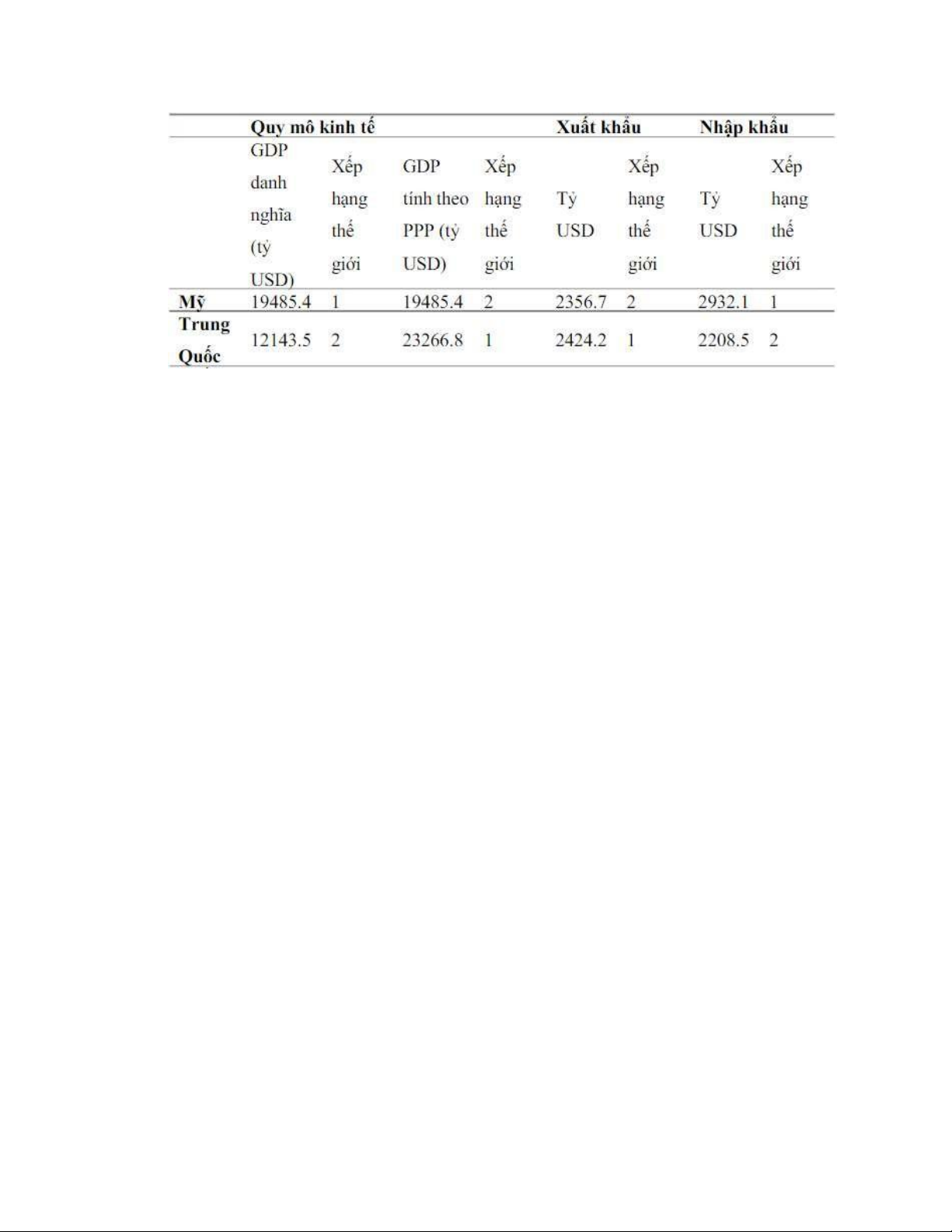 Bảng: Mỹ và Trung Quốc – Hai siêu cường kinh tế thế giới (số liệu năm 2017) lOMoAR cPSD| 60696302