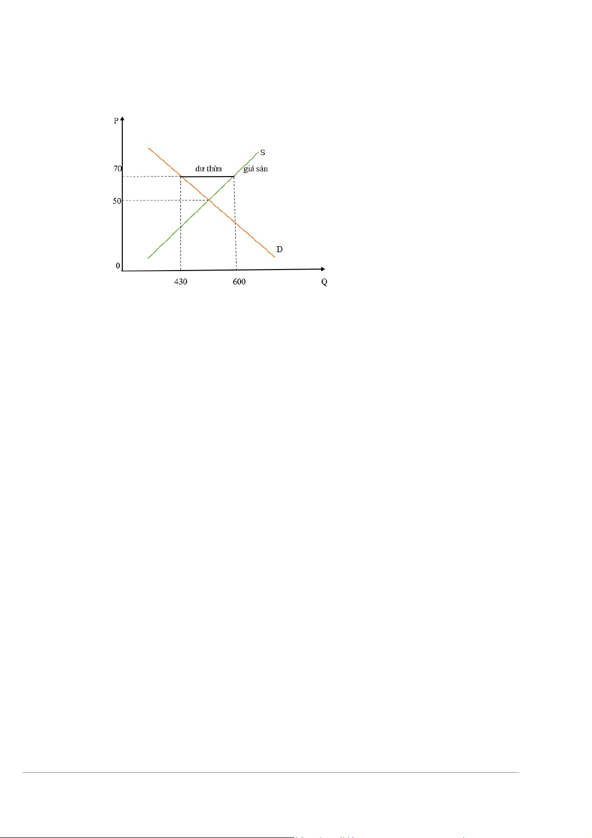 giá sàn ấy, cung tăng lên thành 600 đơn vị sản phẩm. Do vậy có sự dư thừa hàng hóa trên thị trường: