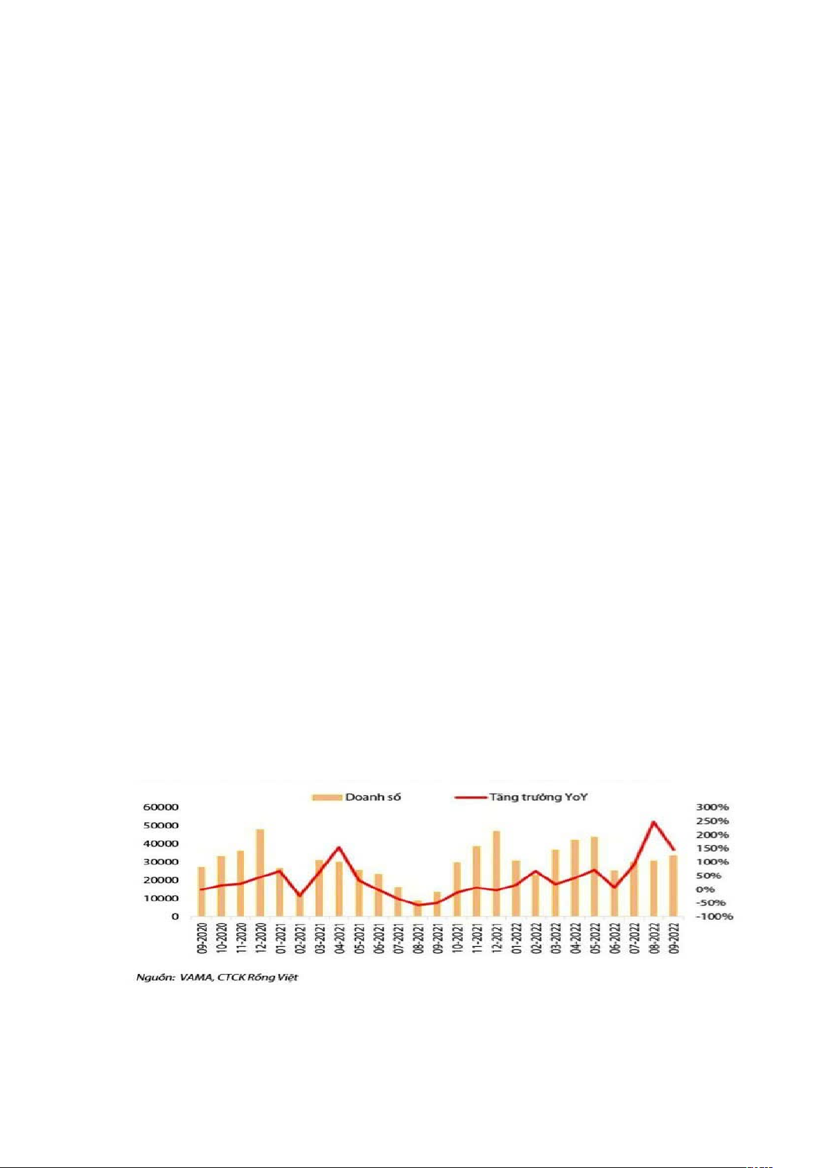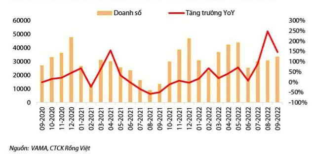 Hình 1: Doanh số và chỉ số tăng trưởng ô tô Việt Nam 09-2020 đến 09-2022