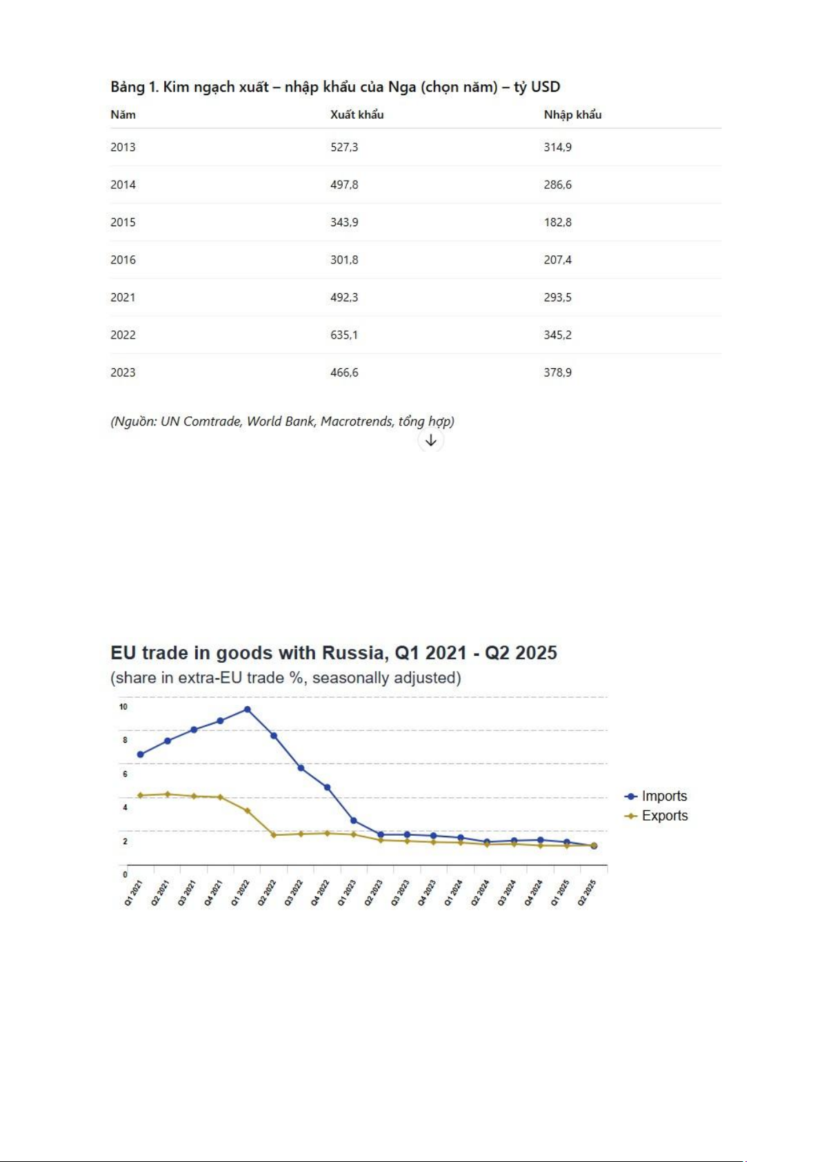 Tây (đặc biệt từ năm 2014 và sau xung đột 2022), tỷ trọng này có xu hướng giảm do