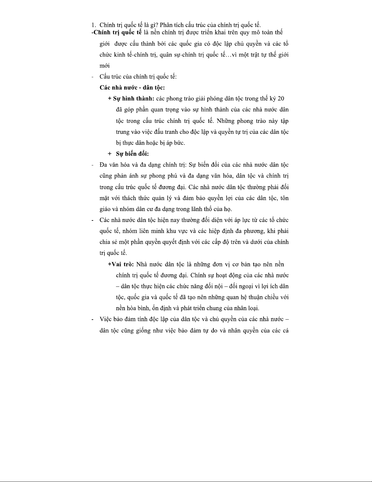 Chính trị học BTH: Phân tích cấu trúc chính trị quốc tế và tổ chức toàn cầu
