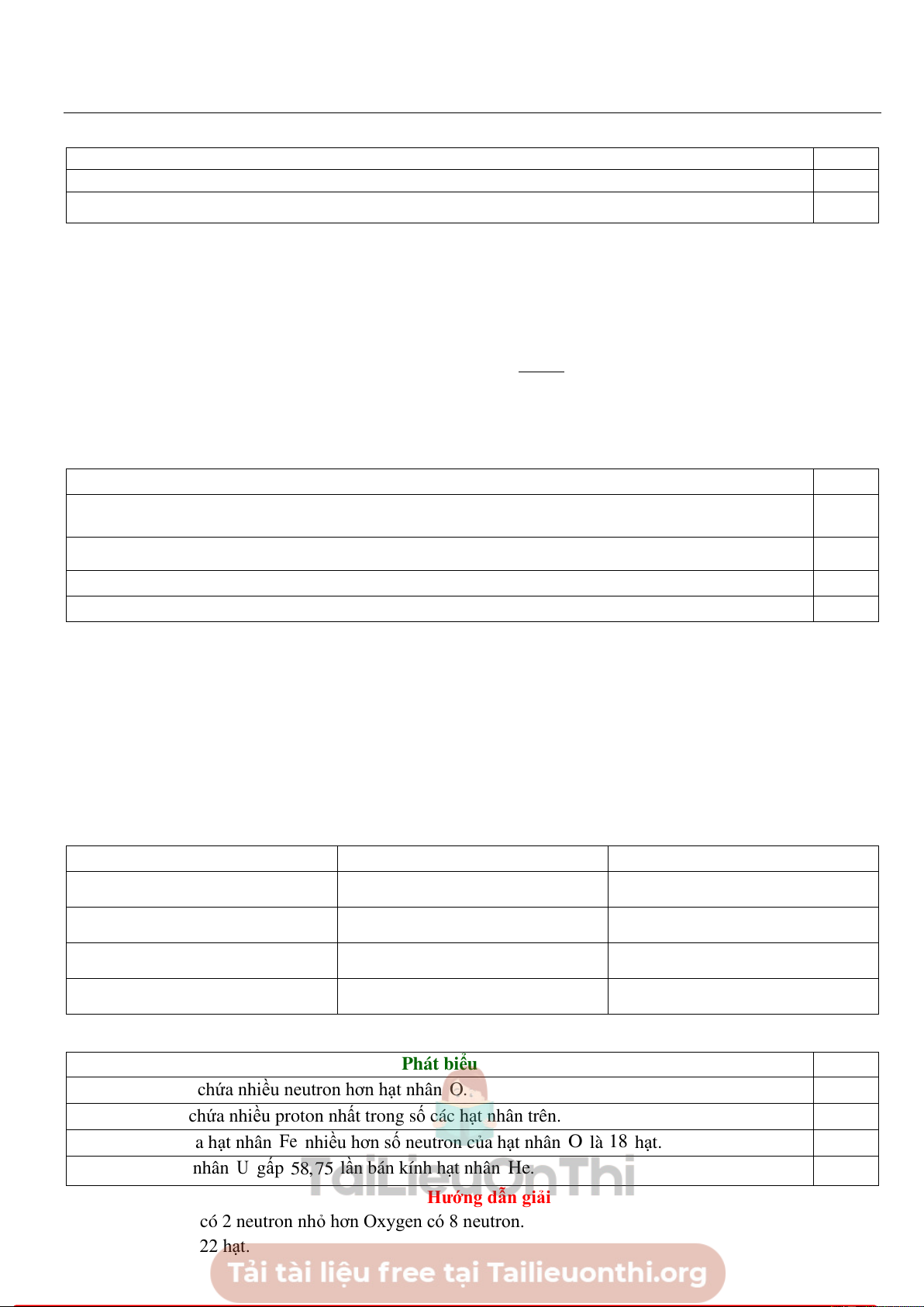 Điện tích hạt nhân Số nucleon Helium (He) 2e + 4 Oxygen (O) 8e + 16 Iron (Fe) 26e + 56 Uranium (U) 92e + 235 Phát biểu Đ – S