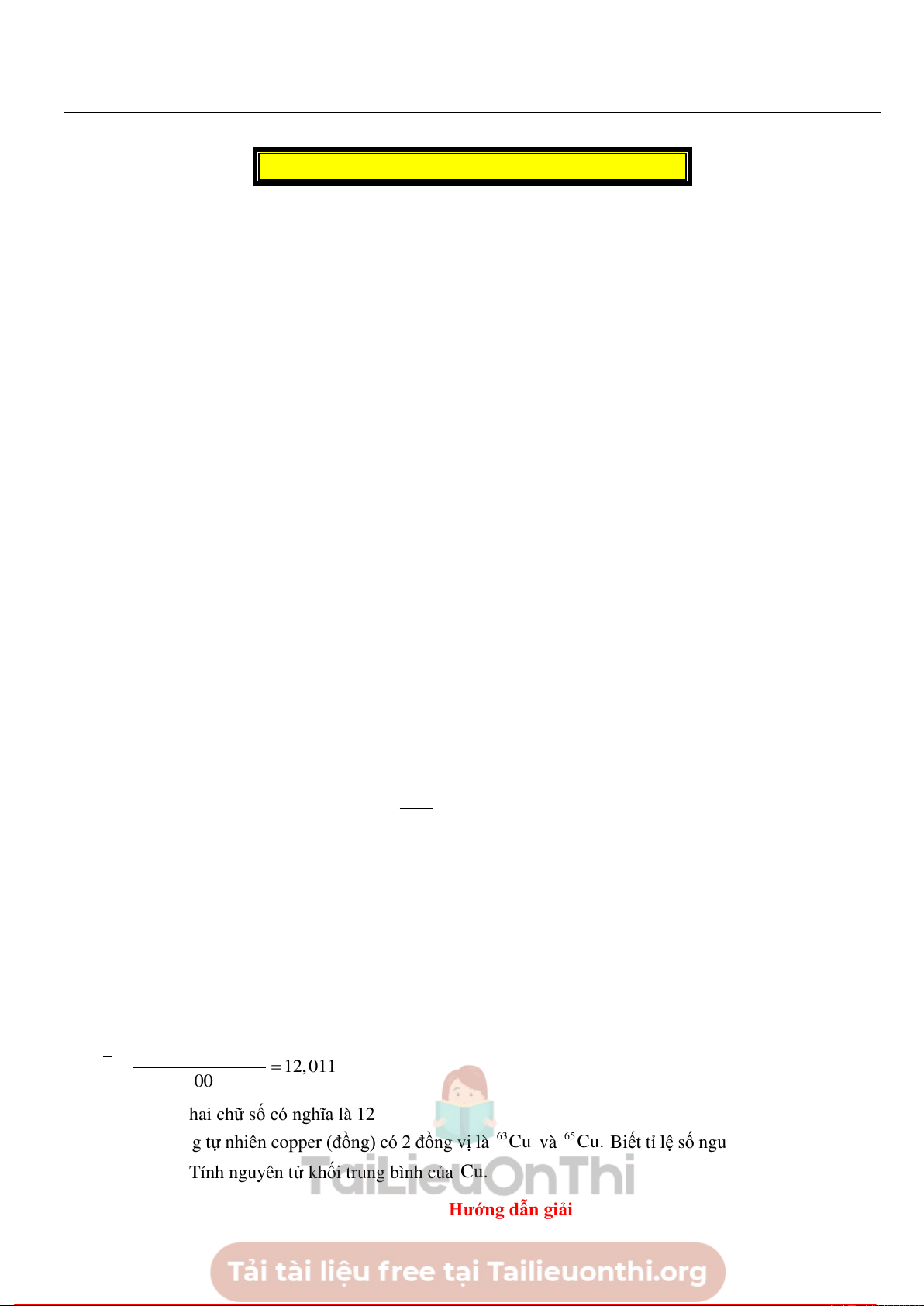 lượt là 105:245. Tính nguyên tử khối trung bình của Cu. Hướng dẫn giải