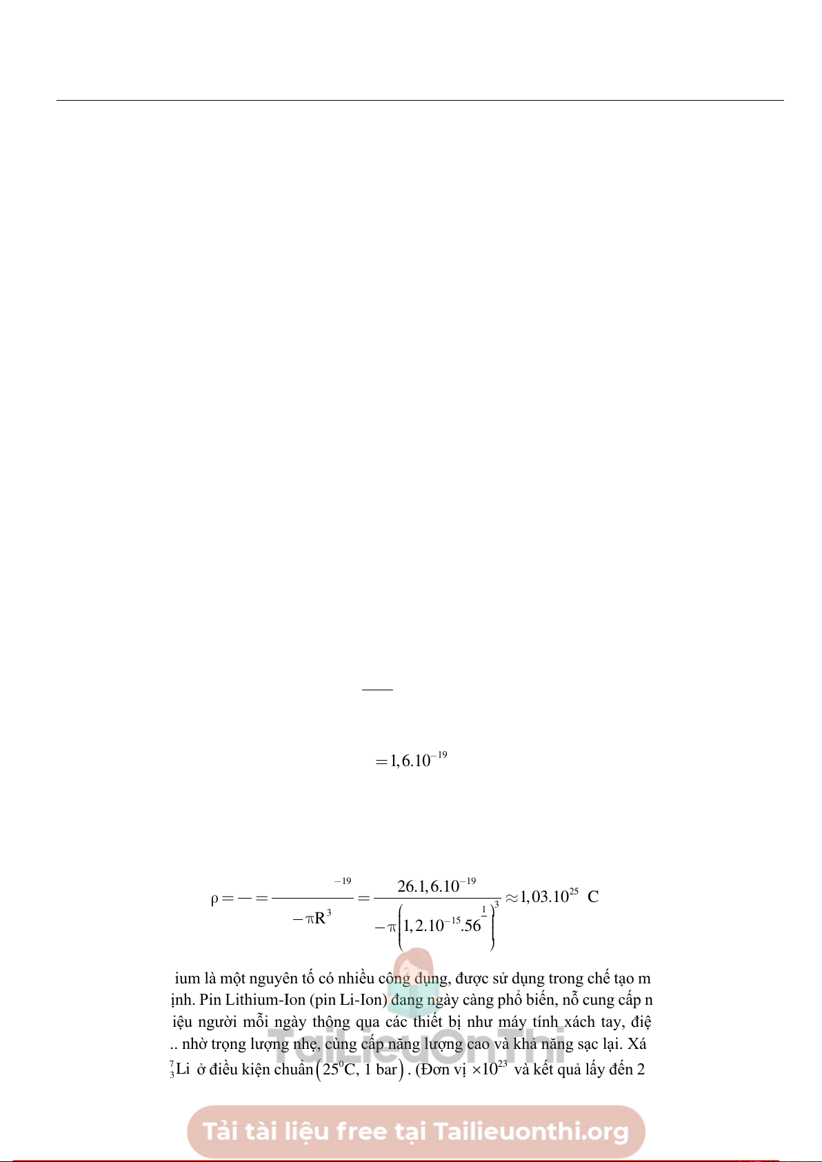 Câu 17: Lithium là một nguyên tố có nhiều công dụng, được sử dụng trong chế tạo máy bay và trong một
