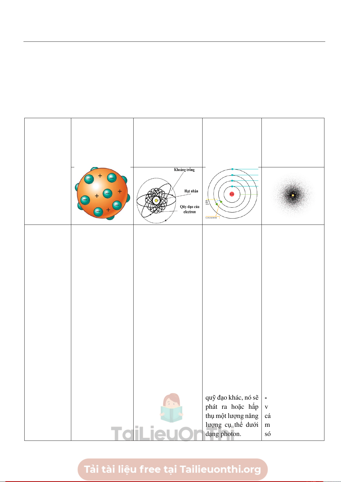 Các mô hình nguyên tử qua các thời kì: Mô hình đám mây Mô hình nguyên Mô hình nguyên tử Mô hình nguyên điện tử của tử của Joseph của Ernest tử của Niels Bohr Schrödinger và John Thompson Rutherford (Năm 1913) Heisenberg (Năm 1904) (Năm 1911) MÔ HÌNH (Năm 1926) NGUYÊN TỬ