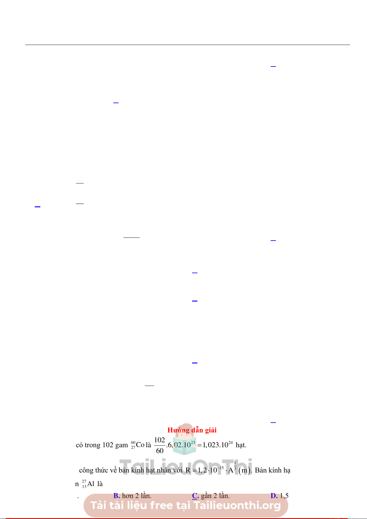 d. Bán kính hạt nhân U gấp 58,75 lần bán kính hạt nhân He. S Hướng dẫn giải