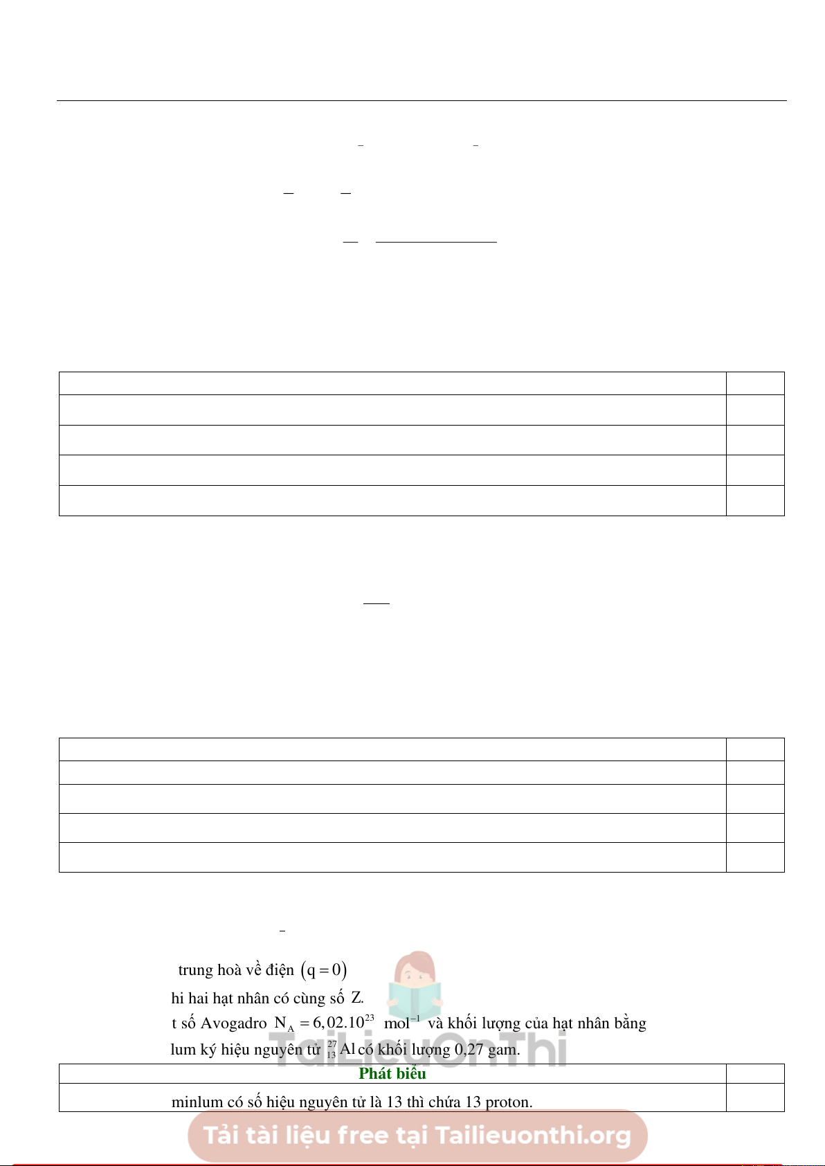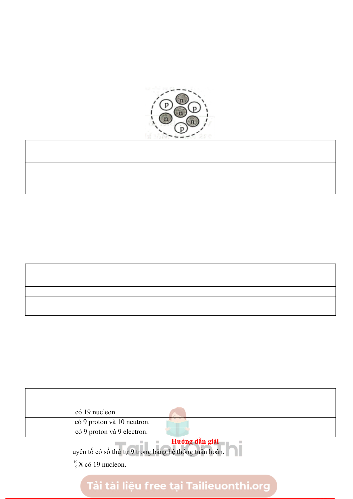 Câu 16: Bảng dưới đây mô tả số nucleon và điện tích của một số hạt nhân tương ứng với các nguyên tố.