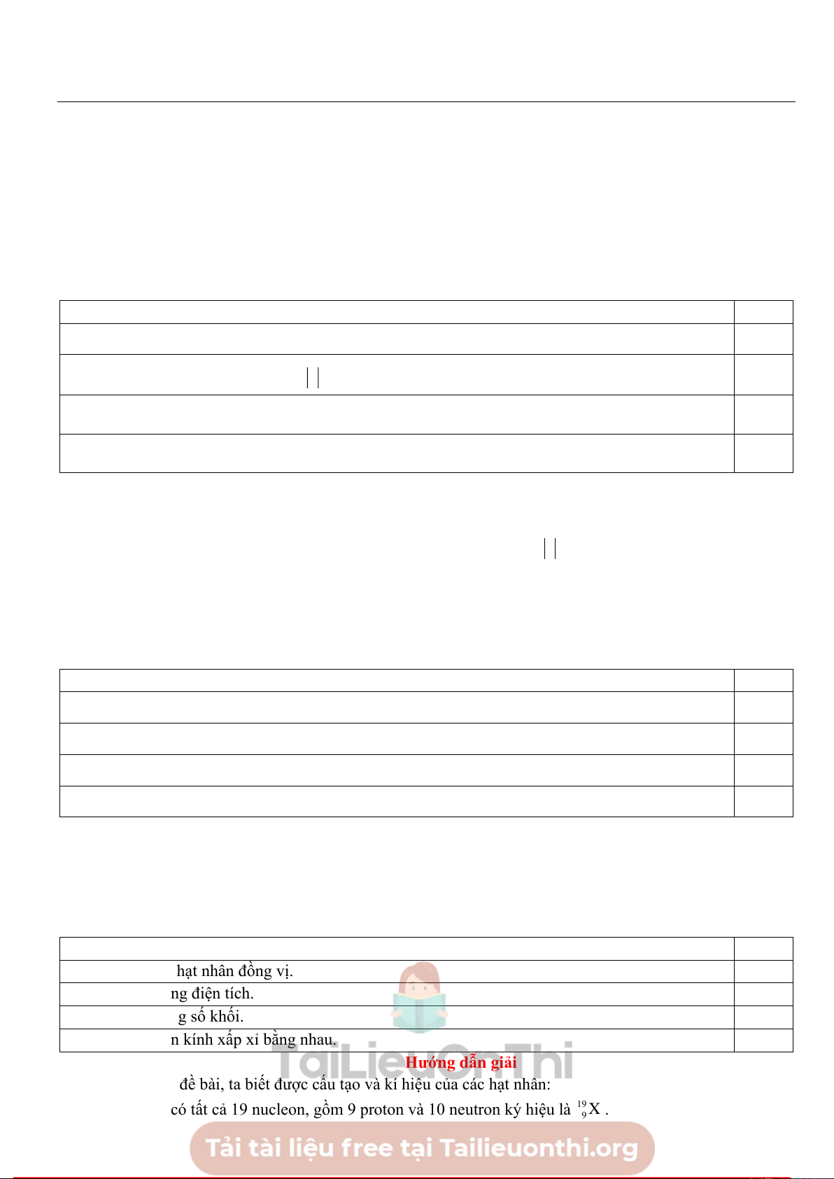 Câu 3: Hạt nhân X có kí hiệu nguyên tử A X , biết hạt nhân X có 10 nucleon mang điện và 10 nucleon Z