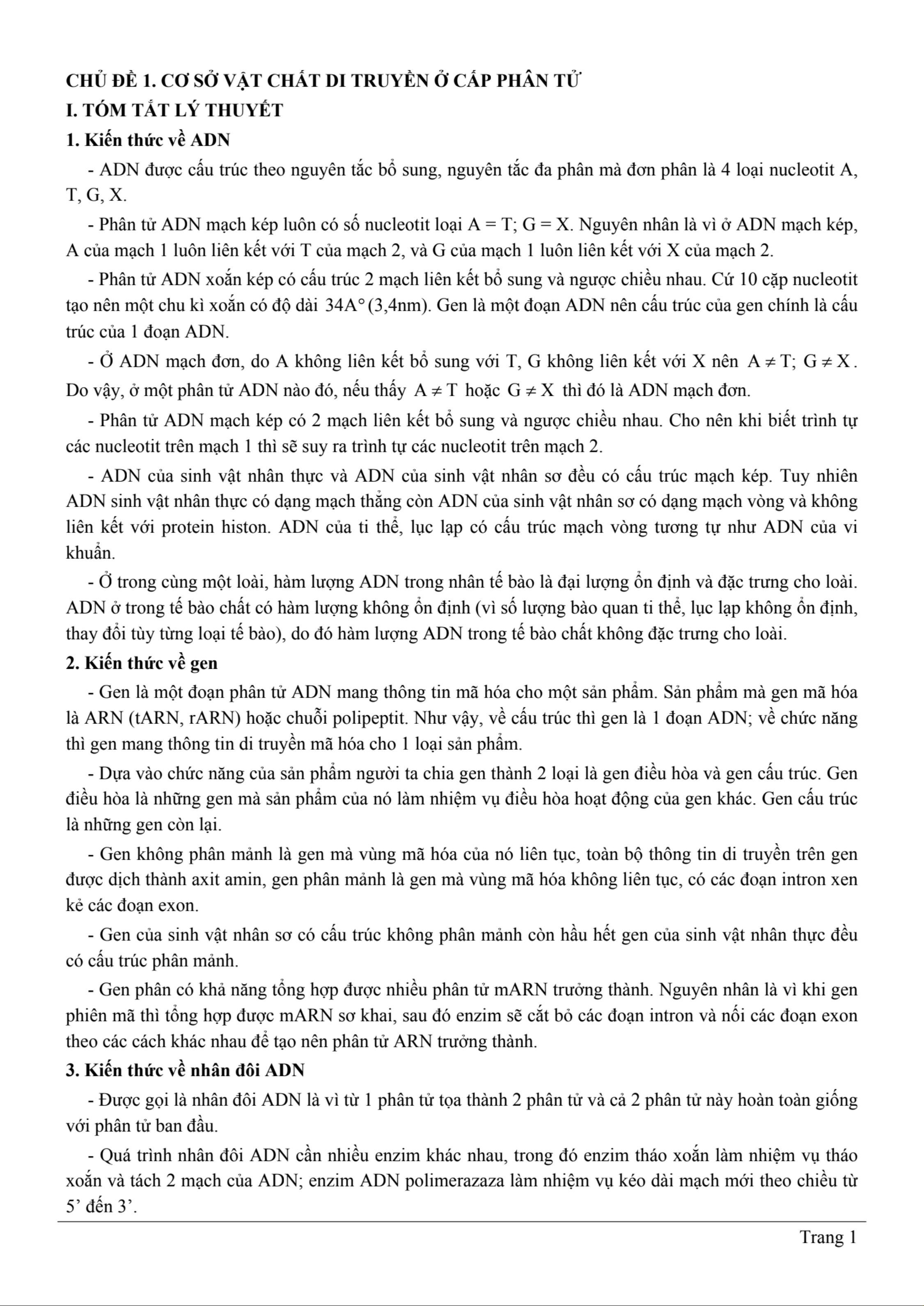 Chủ đề 1. Cơ sở vật chất di truyền ở cấp phân tử môn Sinh học 12