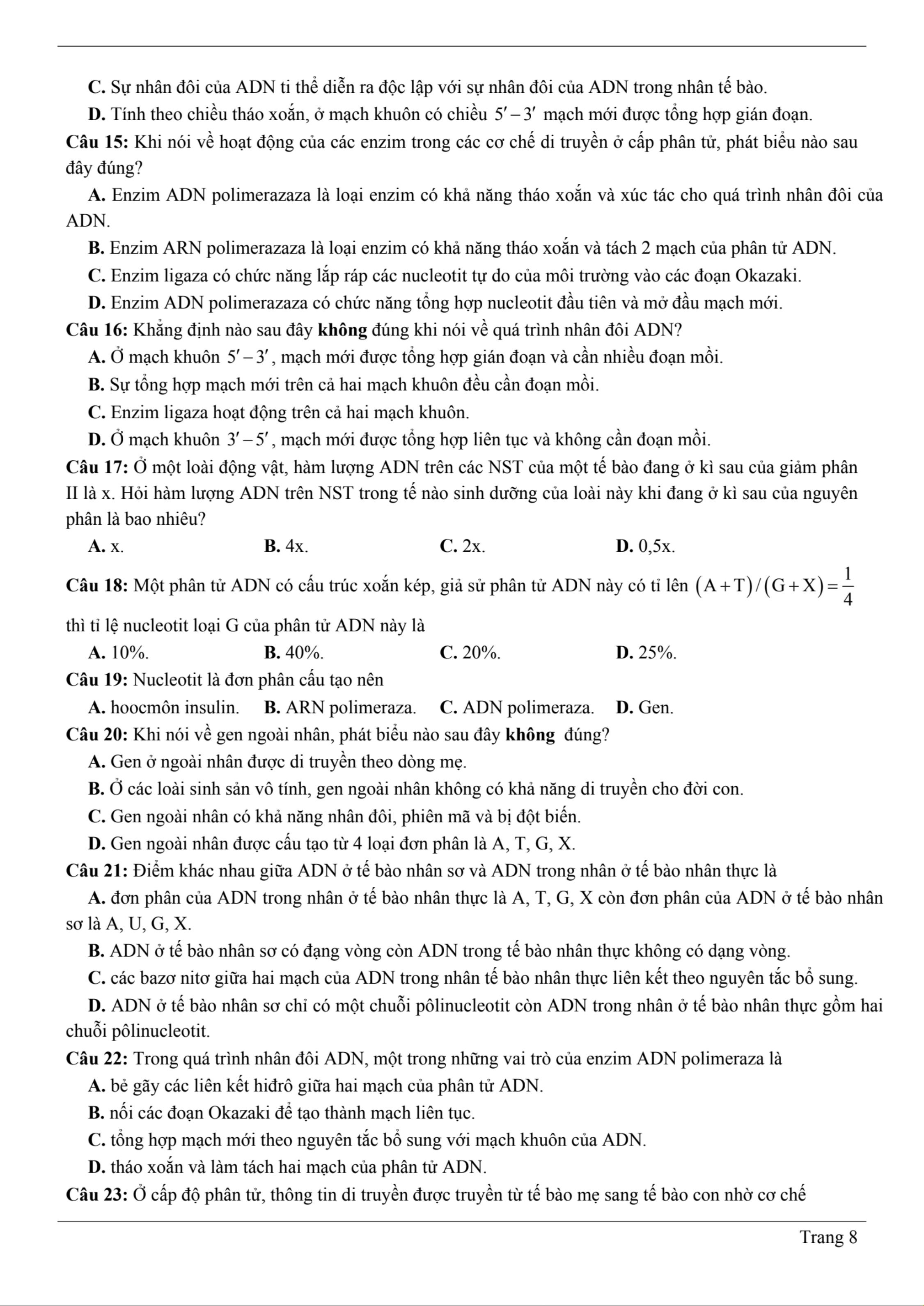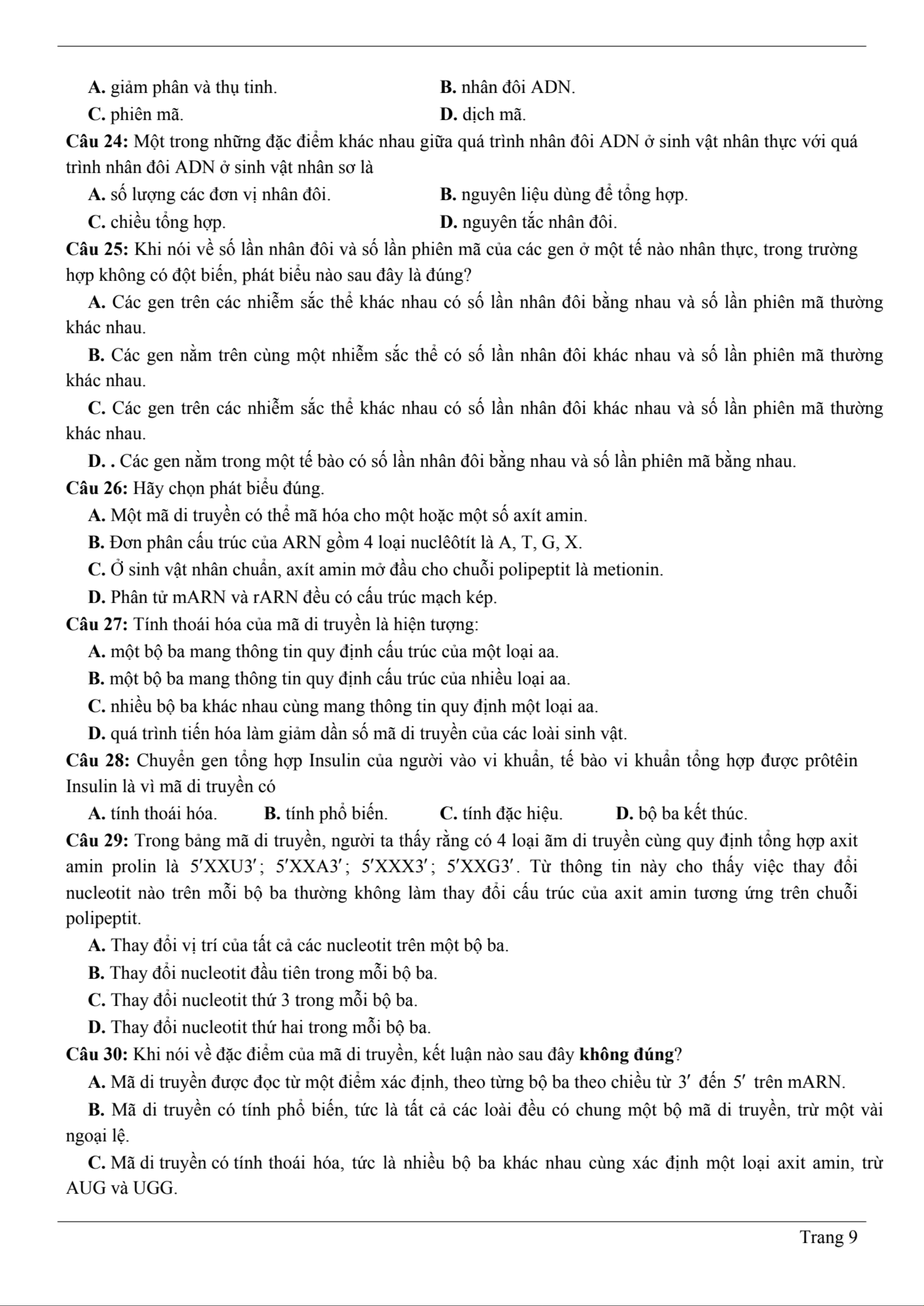 Chủ đề: Chương 1: Cơ chế di truyền và biến dị 40 tài liệu