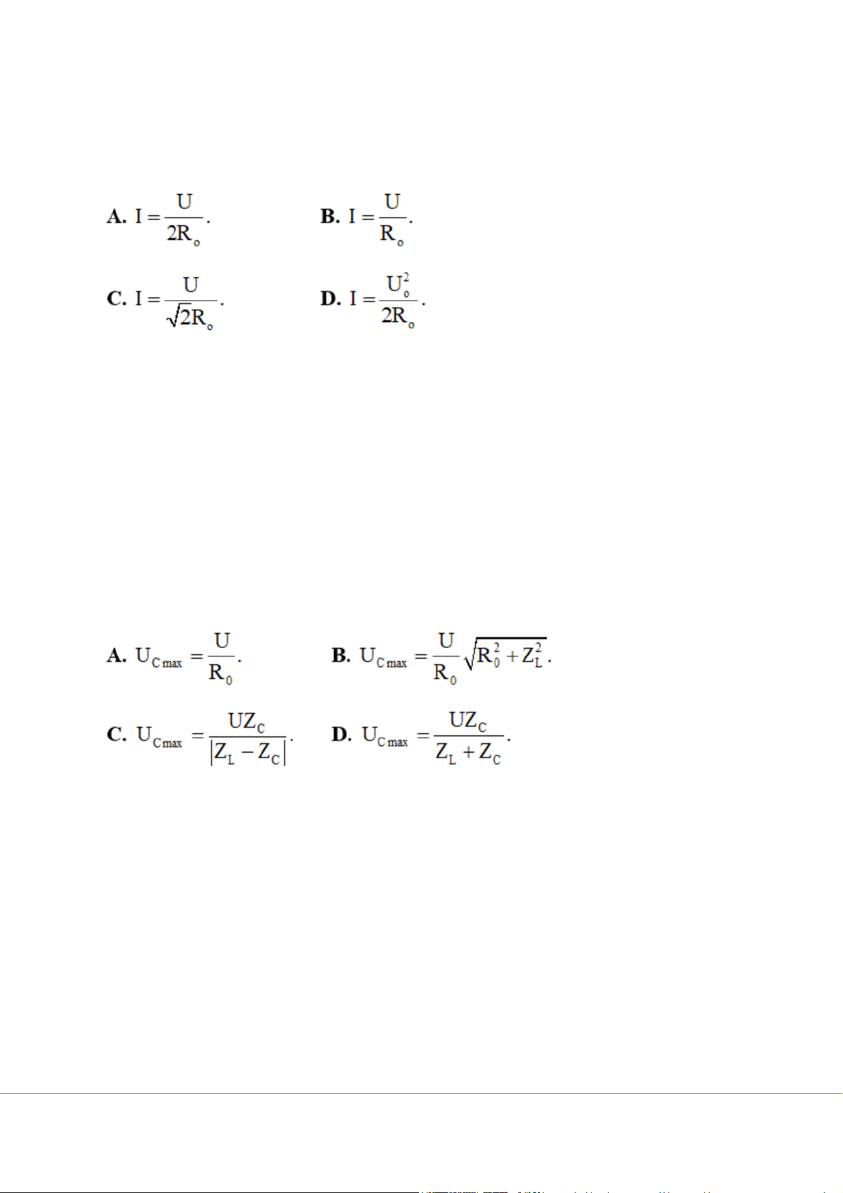 R0 thì UC max. Biểu thức của UC max là QUẢNG CÁO